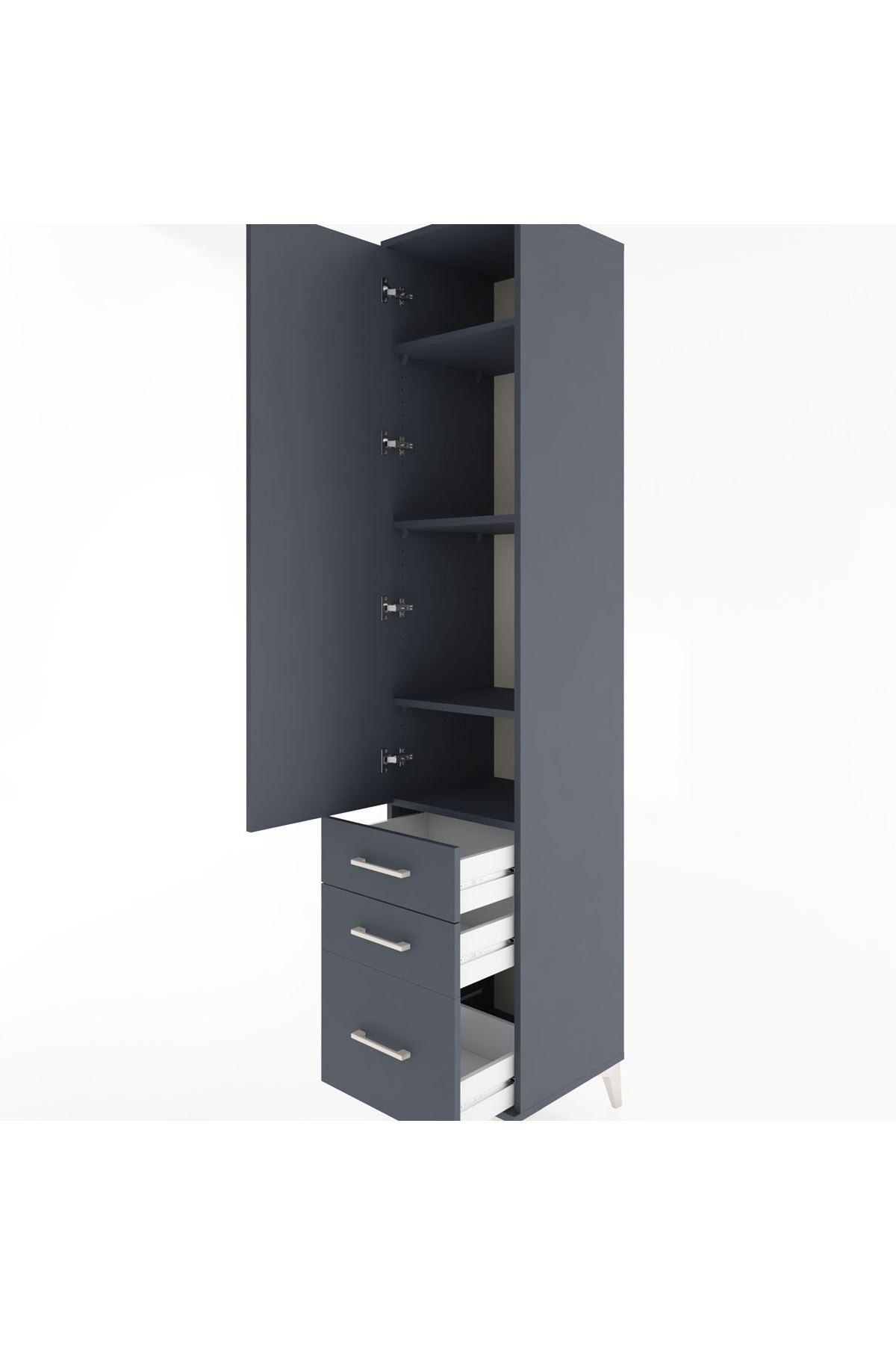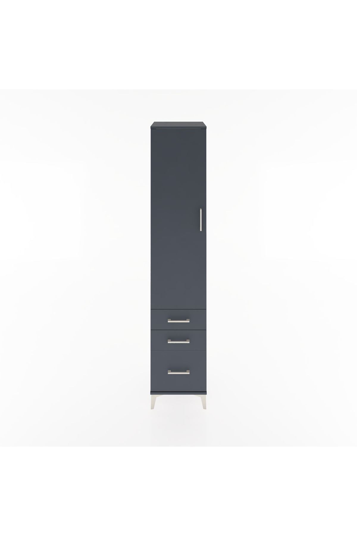 Hyperion Dolap 4 Raflı 3 Çekmeceli Tek Kapaklı 44x44x221 Antrasit-Antrasit