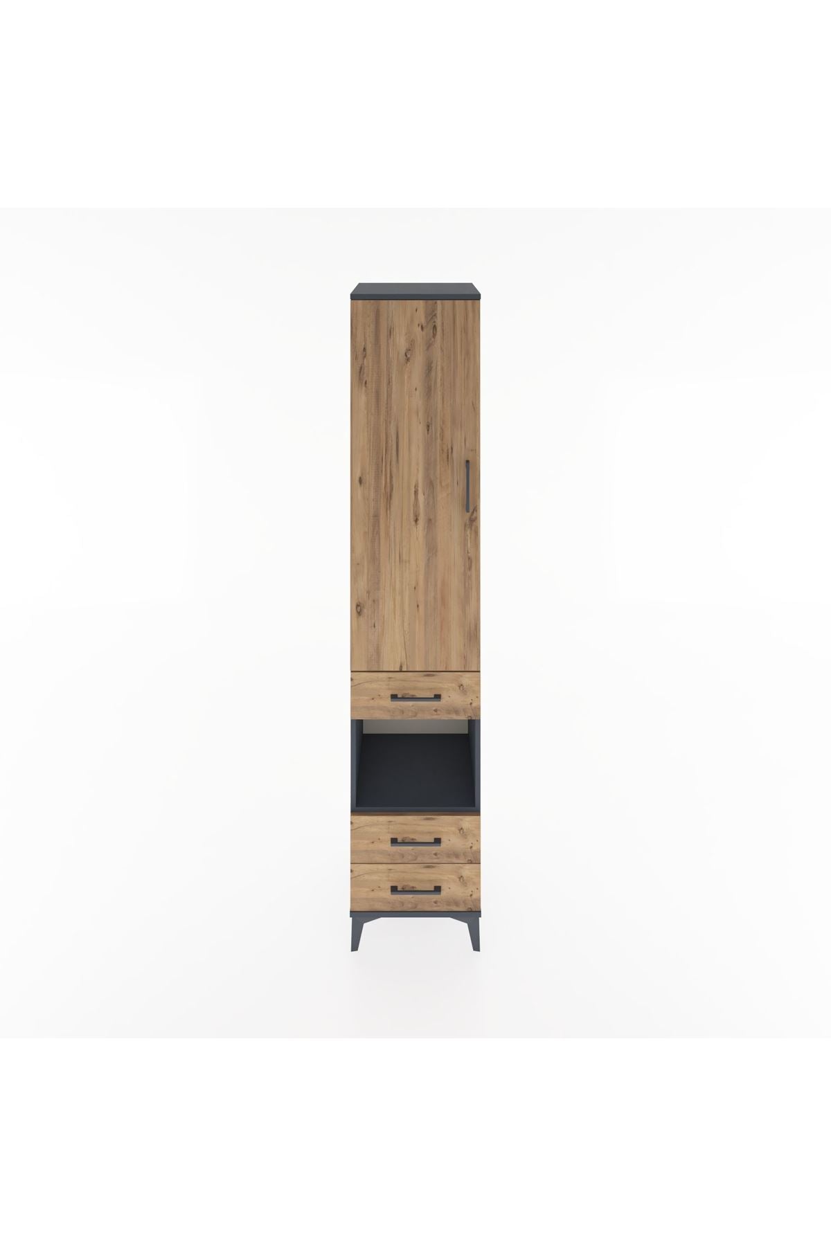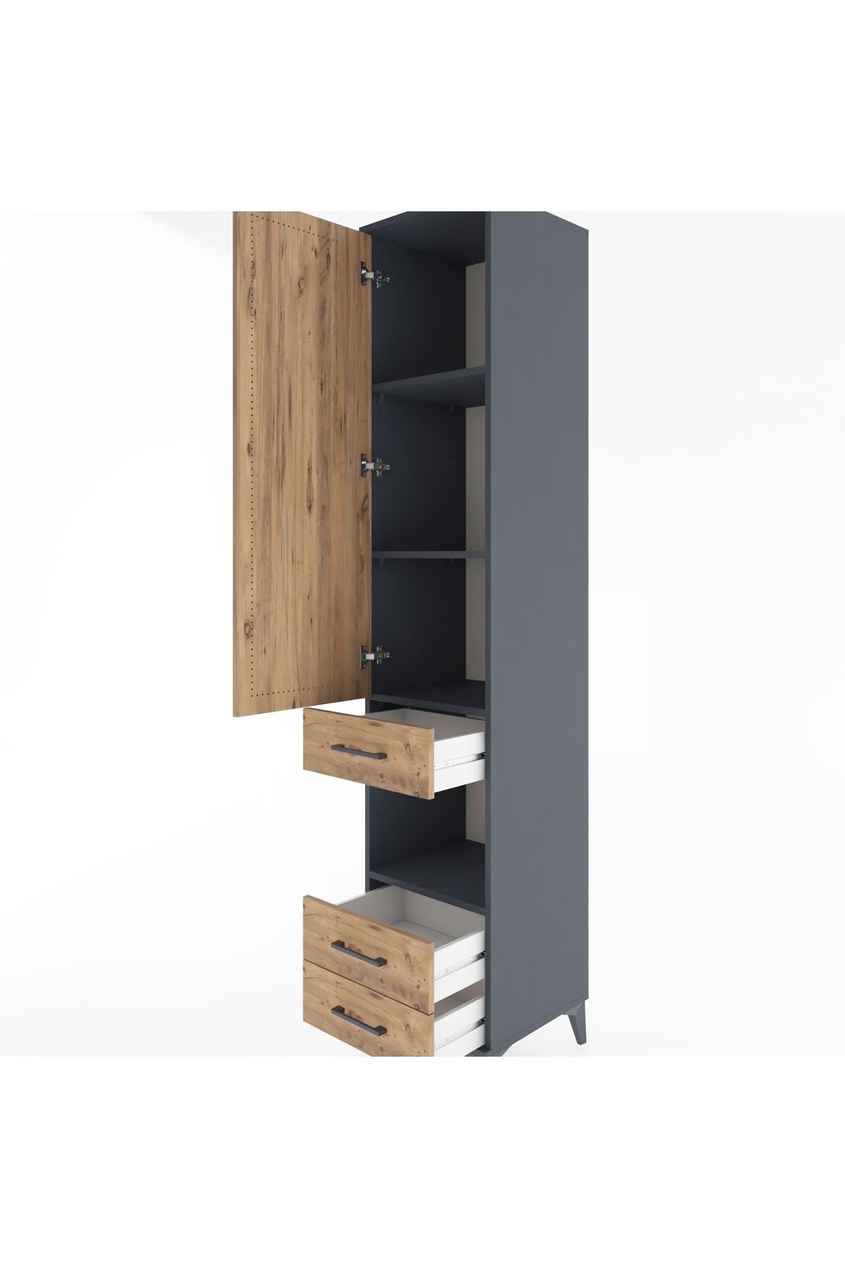 Hyperion Dolap 4 Raflı 3 Çekmeceli Tek Kapaklı 44x44x221 Antrasit-Çam