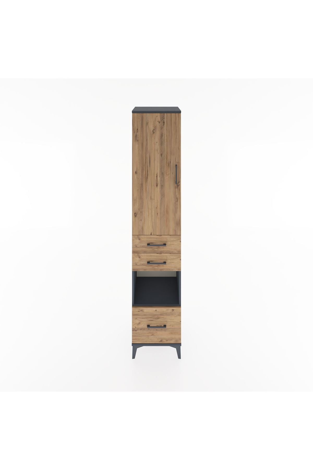 Hyperion Dolap 4 Raflı 3 Çekmeceli Tek Kapaklı 44x44x221 Antrasit-Çam