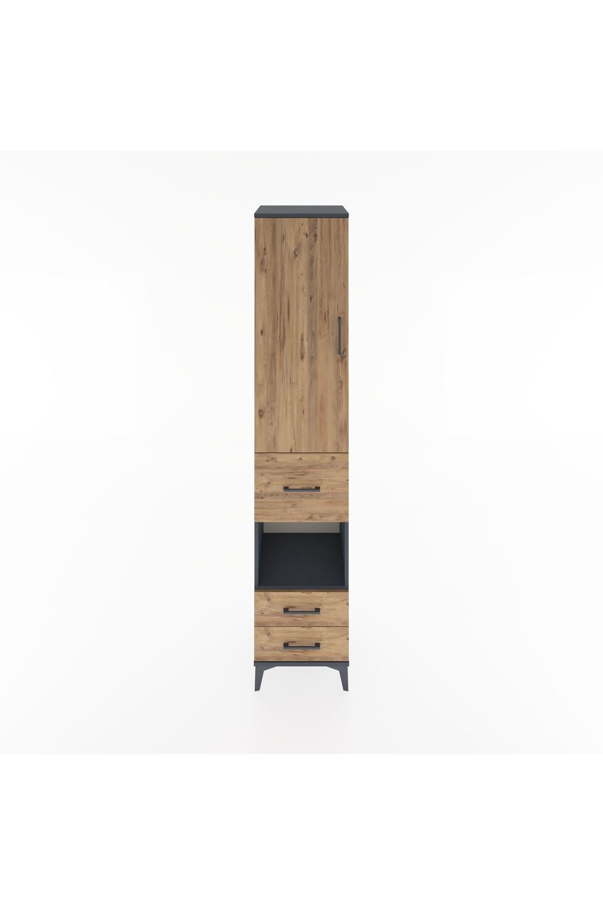 Hyperion Dolap 4 Raflı 3 Çekmeceli Tek Kapaklı 44x44x221 Antrasit-Çam