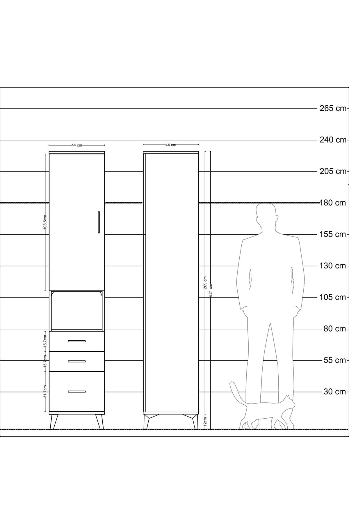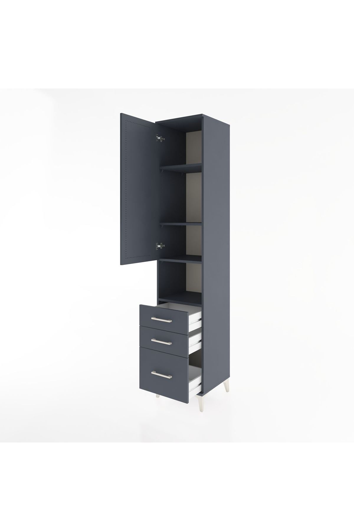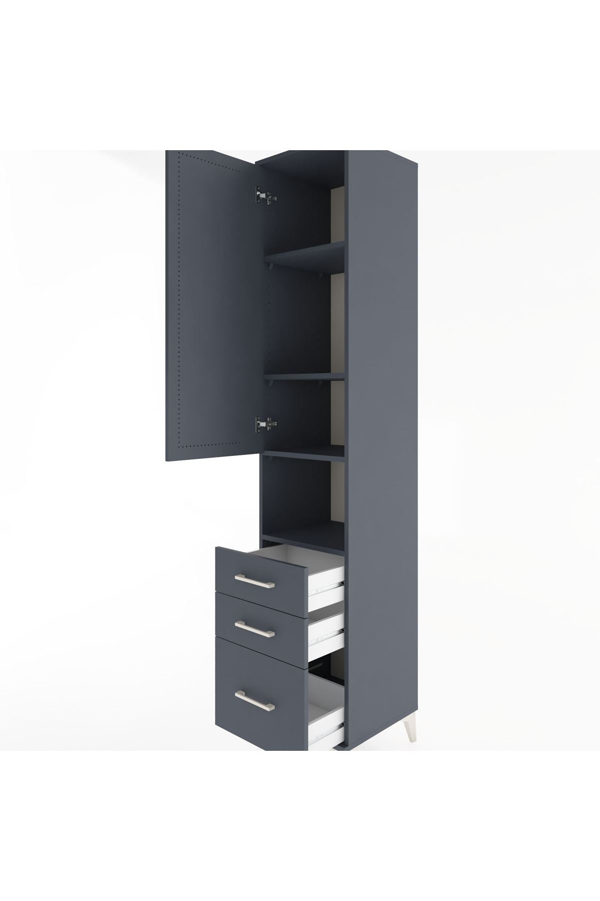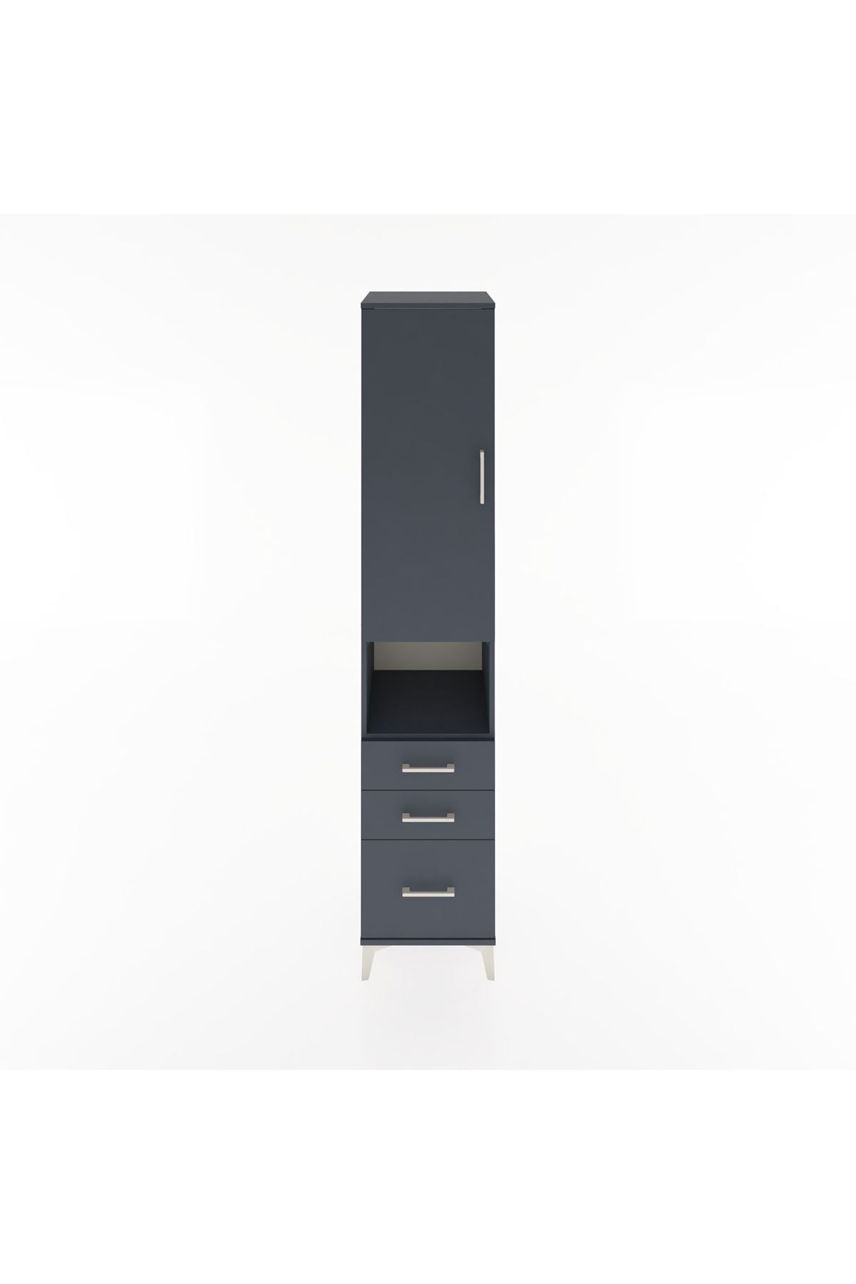 Hyperion Dolap 4 Raflı 3 Çekmeceli Tek Kapaklı 44x44x221 Antrasit-Antrasit