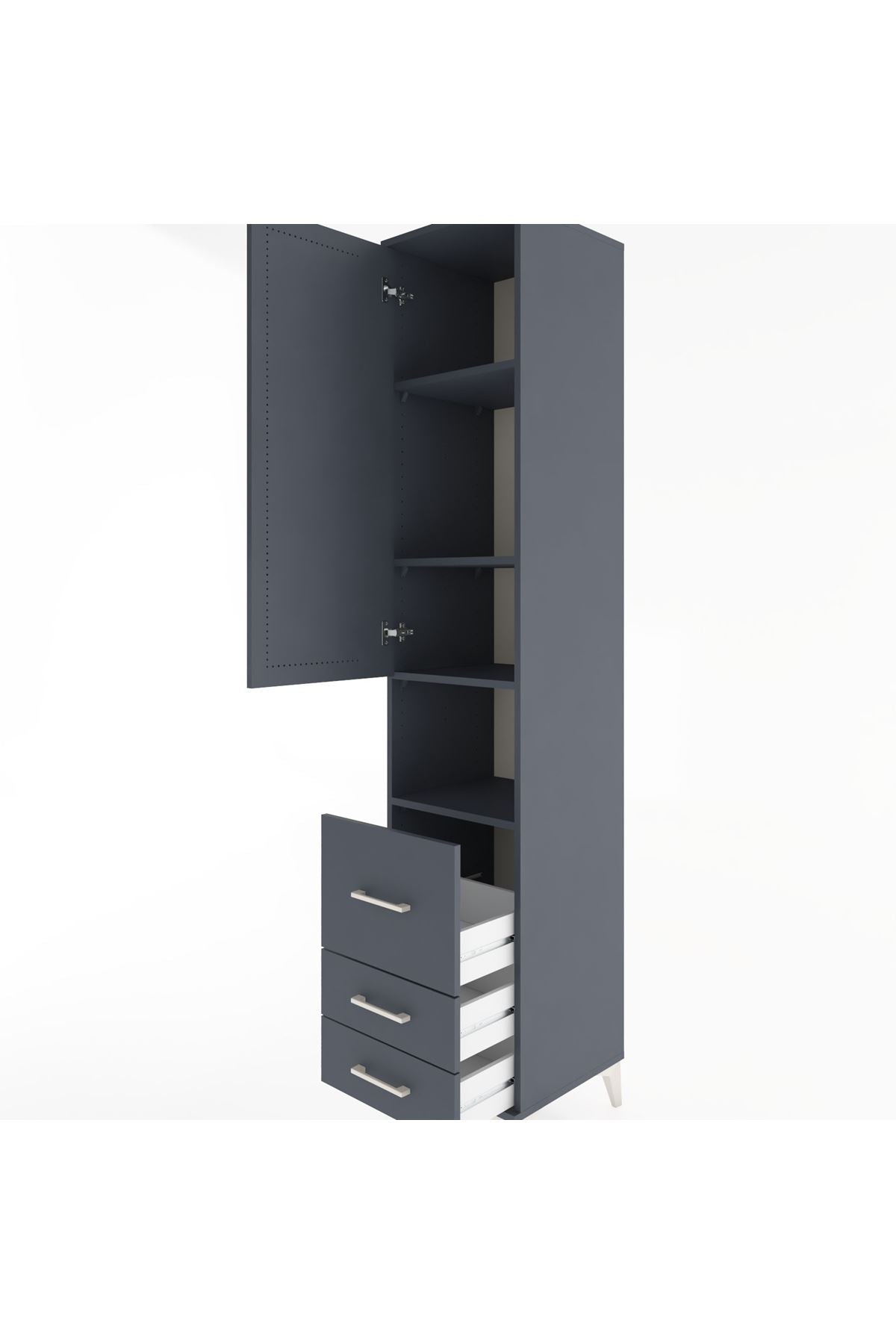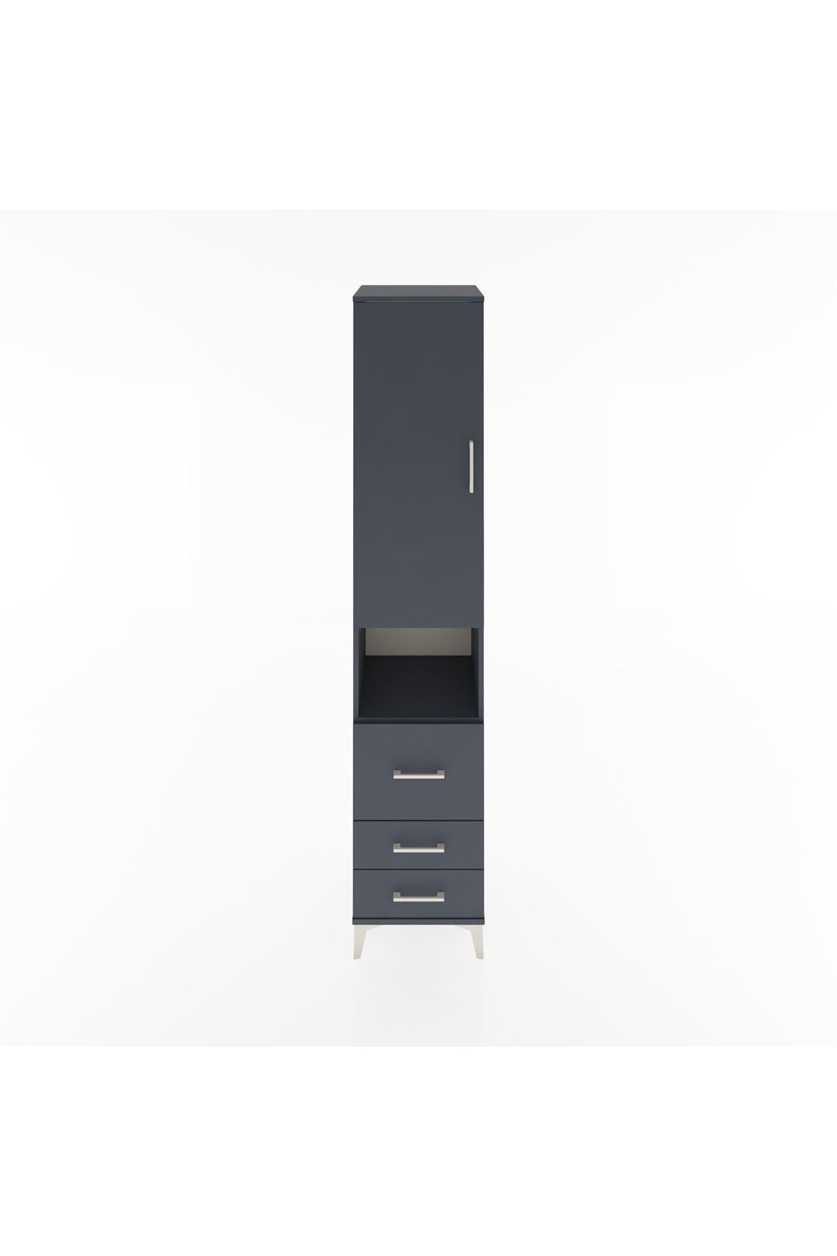 Hyperion Dolap 4 Raflı 3 Çekmeceli Tek Kapaklı 44x44x221 Antrasit-Antrasit