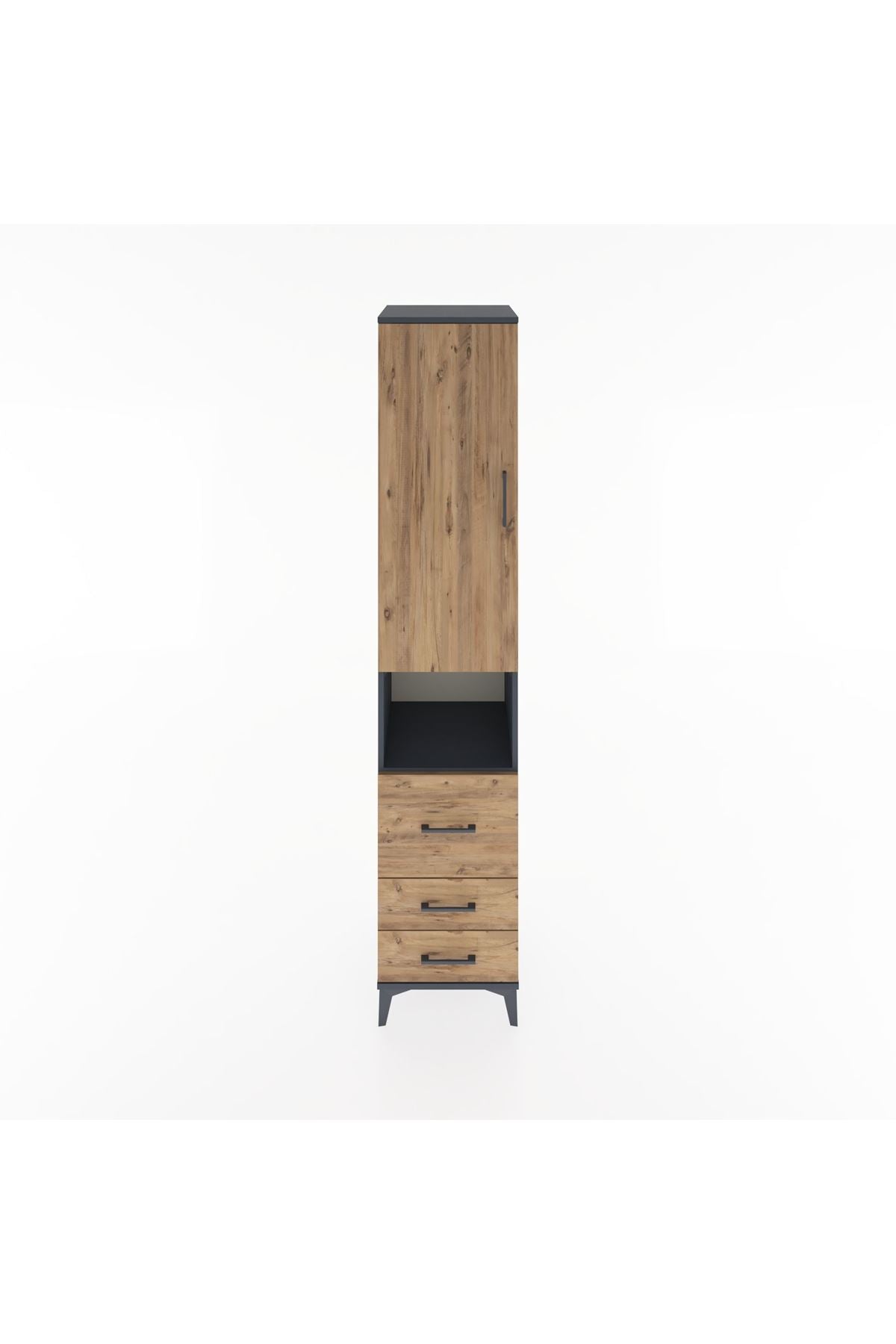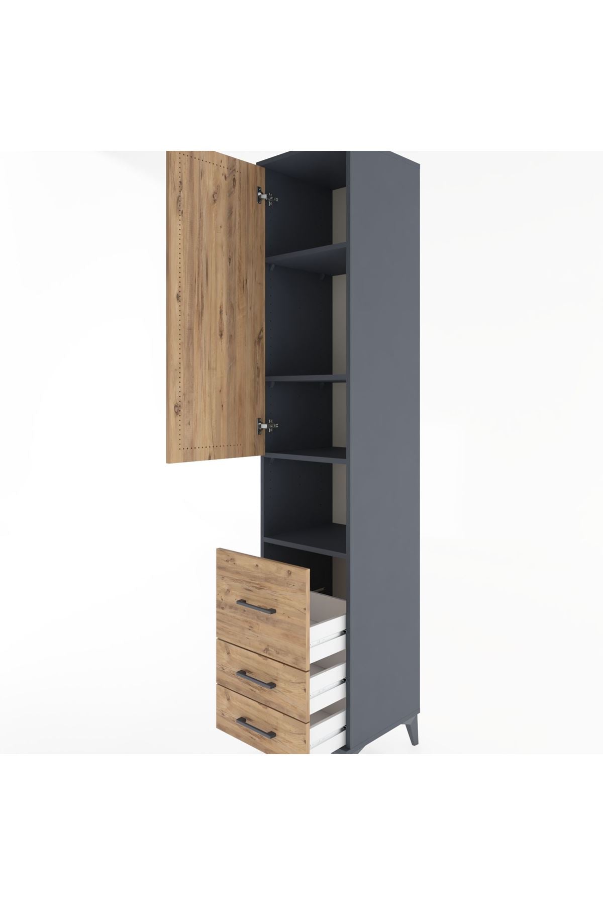 Hyperion Dolap 4 Raflı 3 Çekmeceli Tek Kapaklı 44x44x221 Antrasit-Çam