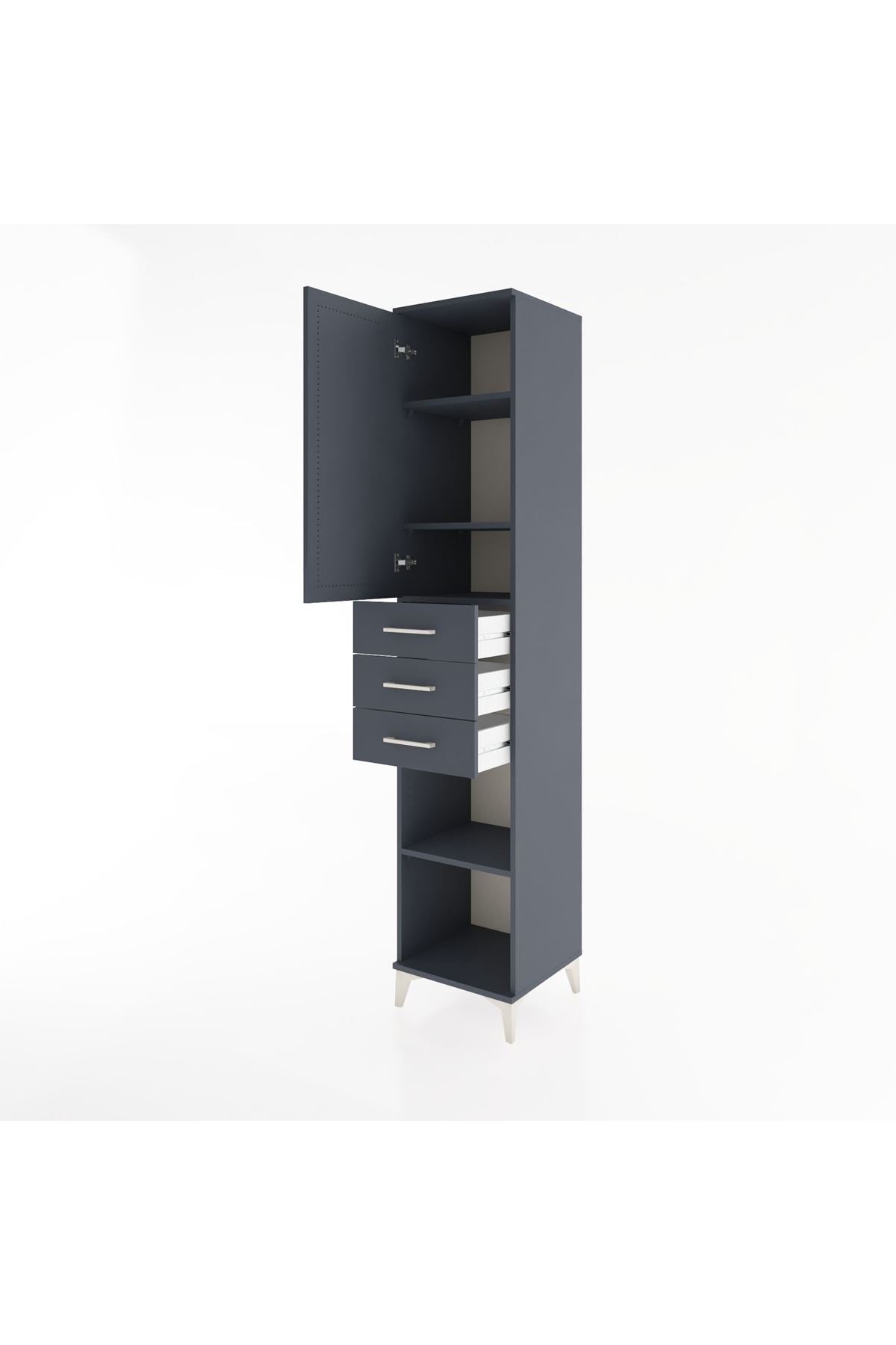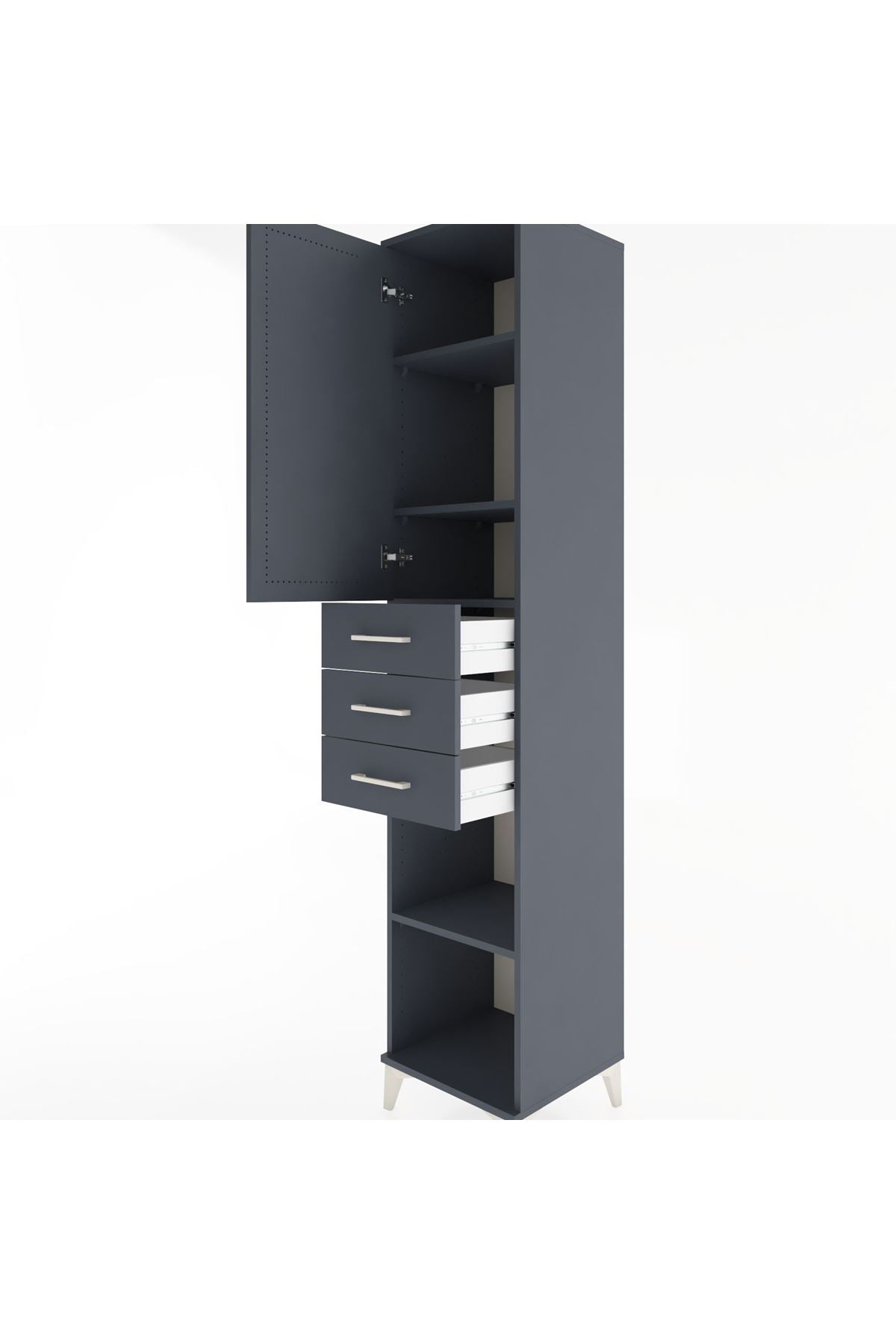 Hyperion Dolap 4 Raflı 3 Çekmeceli Tek Kapaklı 44x44x221 Antrasit-Antrasit
