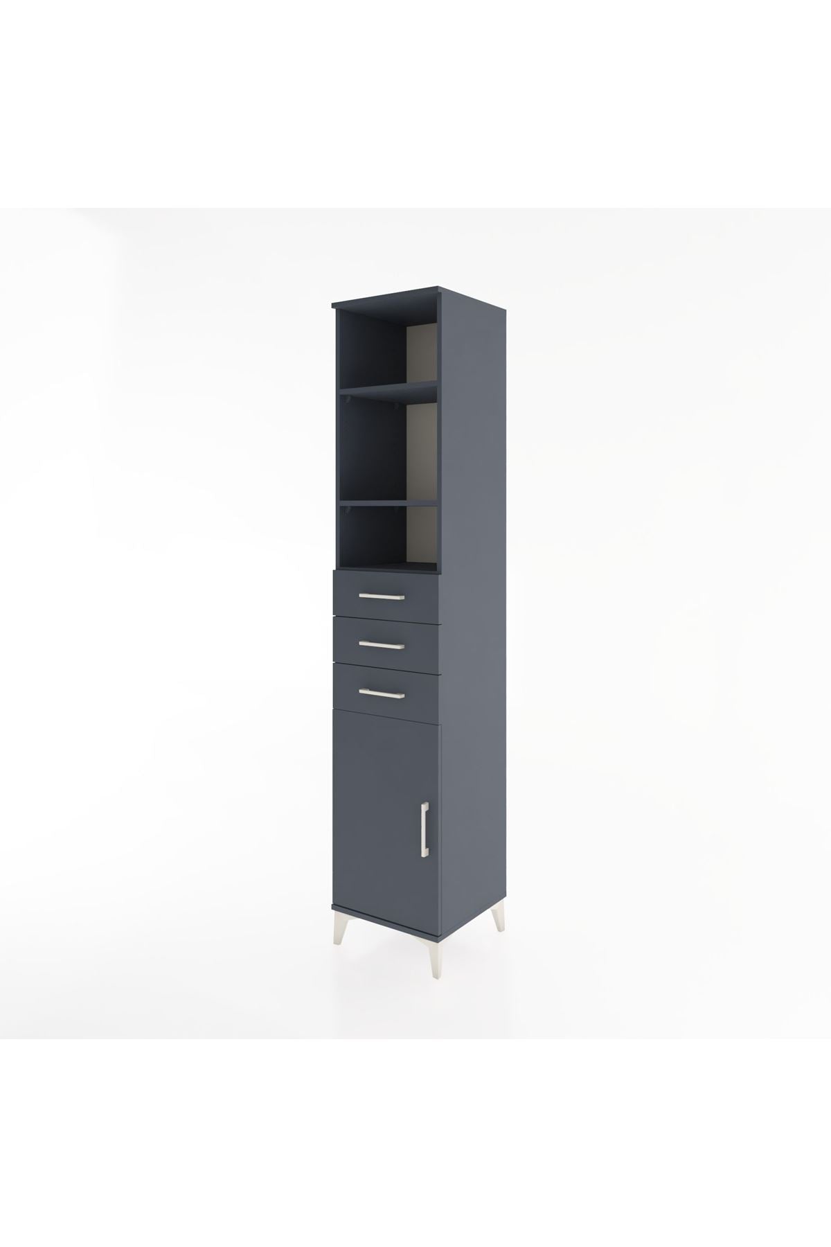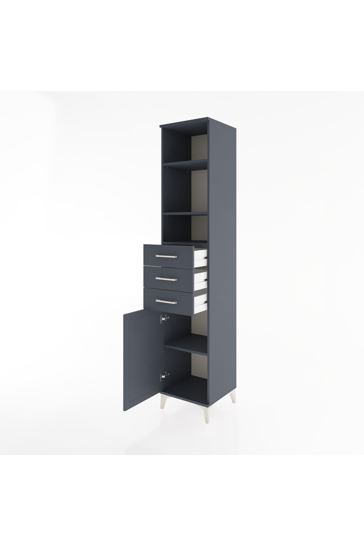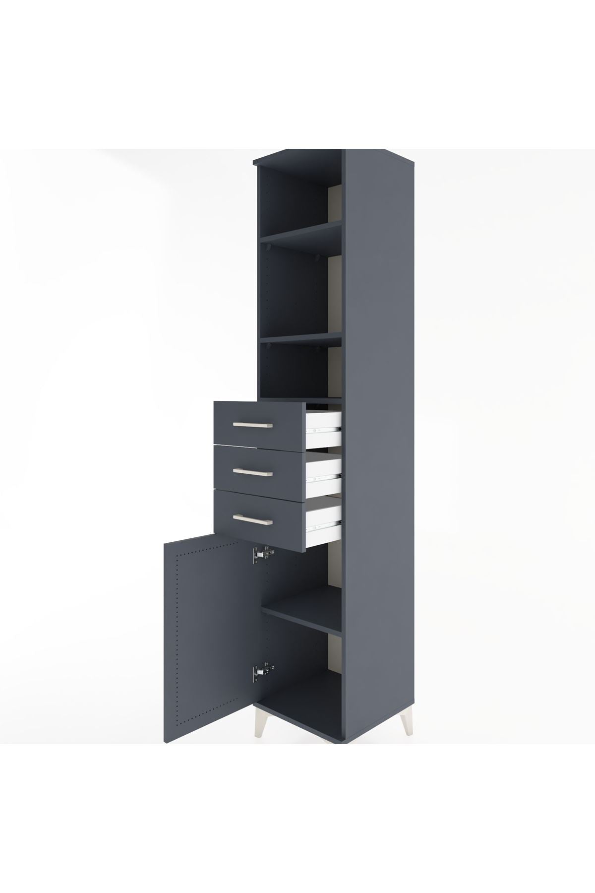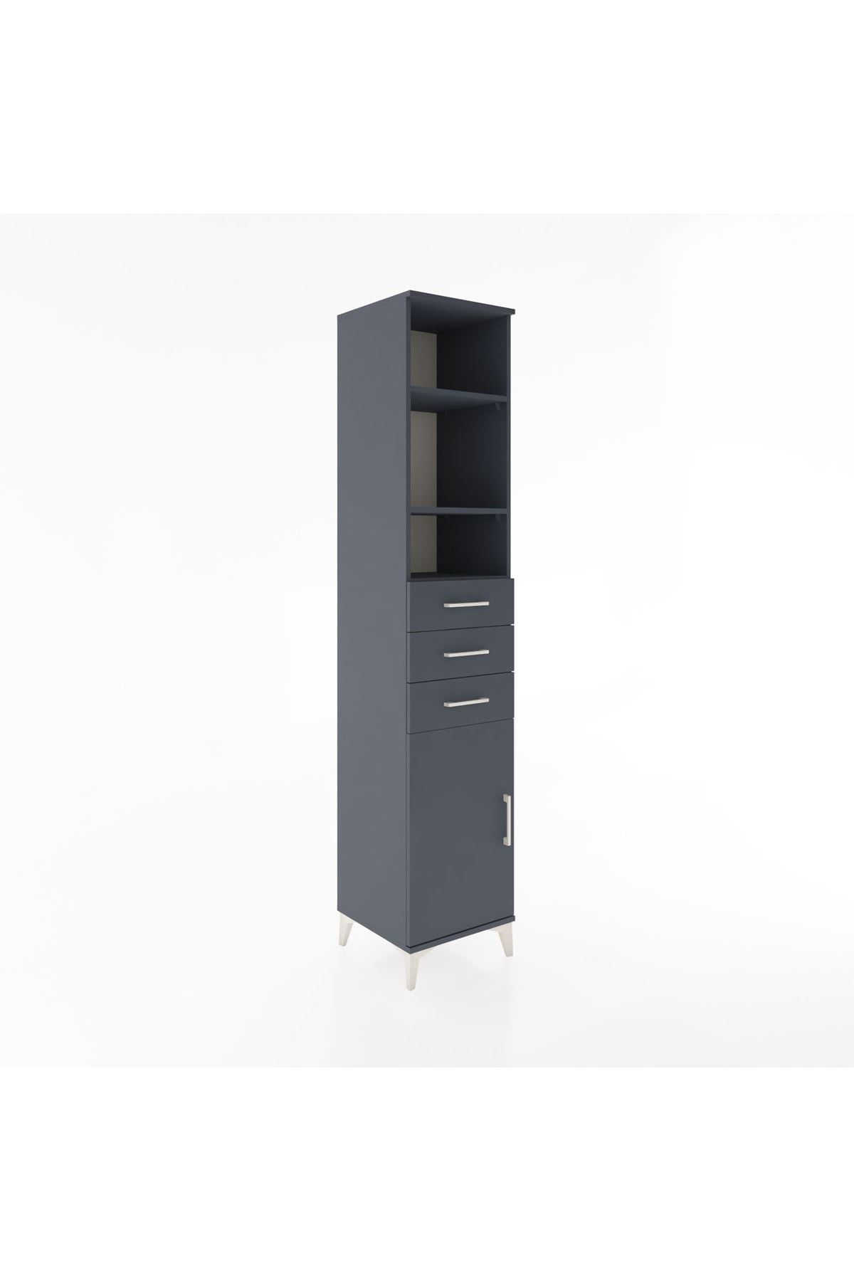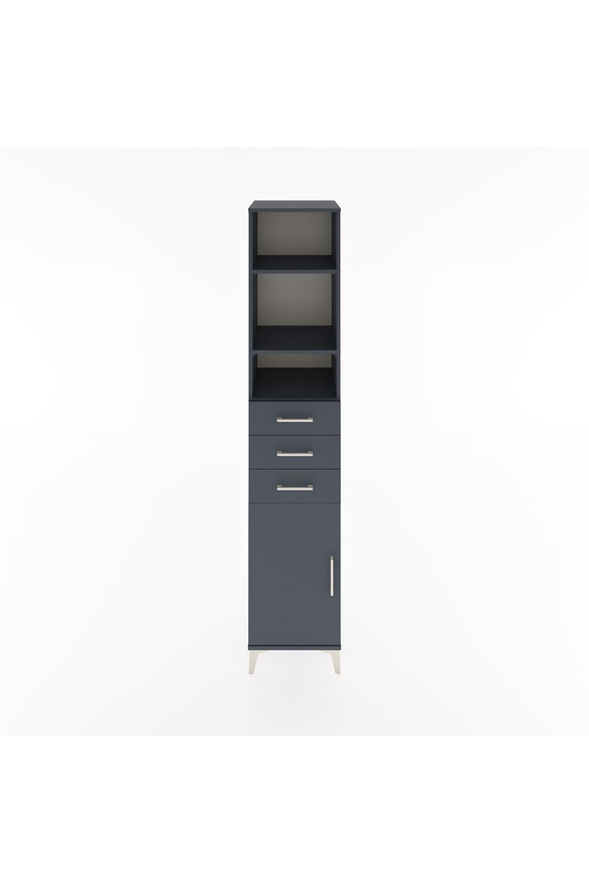 Hyperion Dolap 4 Raflı 3 Çekmeceli Tek Kapaklı 44x44x221 Antrasit-Antrasit