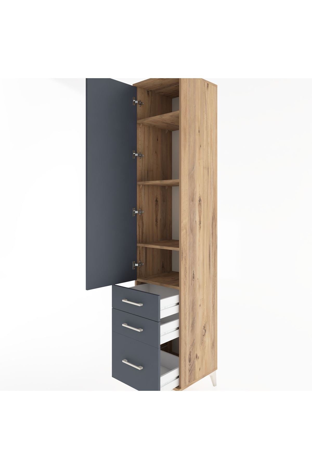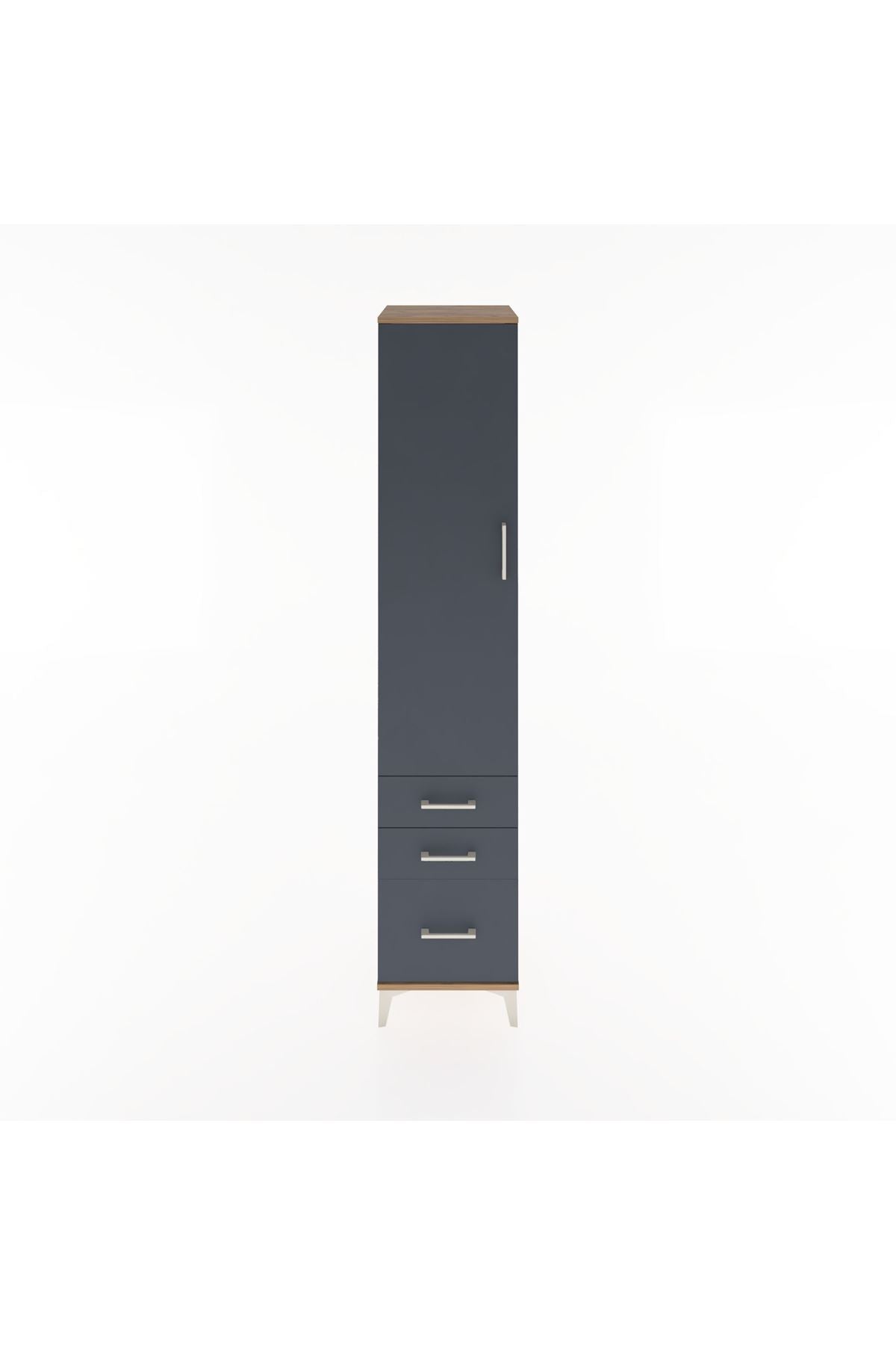 Hyperion Dolap 4 Raflı 3 Çekmeceli Tek Kapaklı 44x44x221 Çam-Antrasit