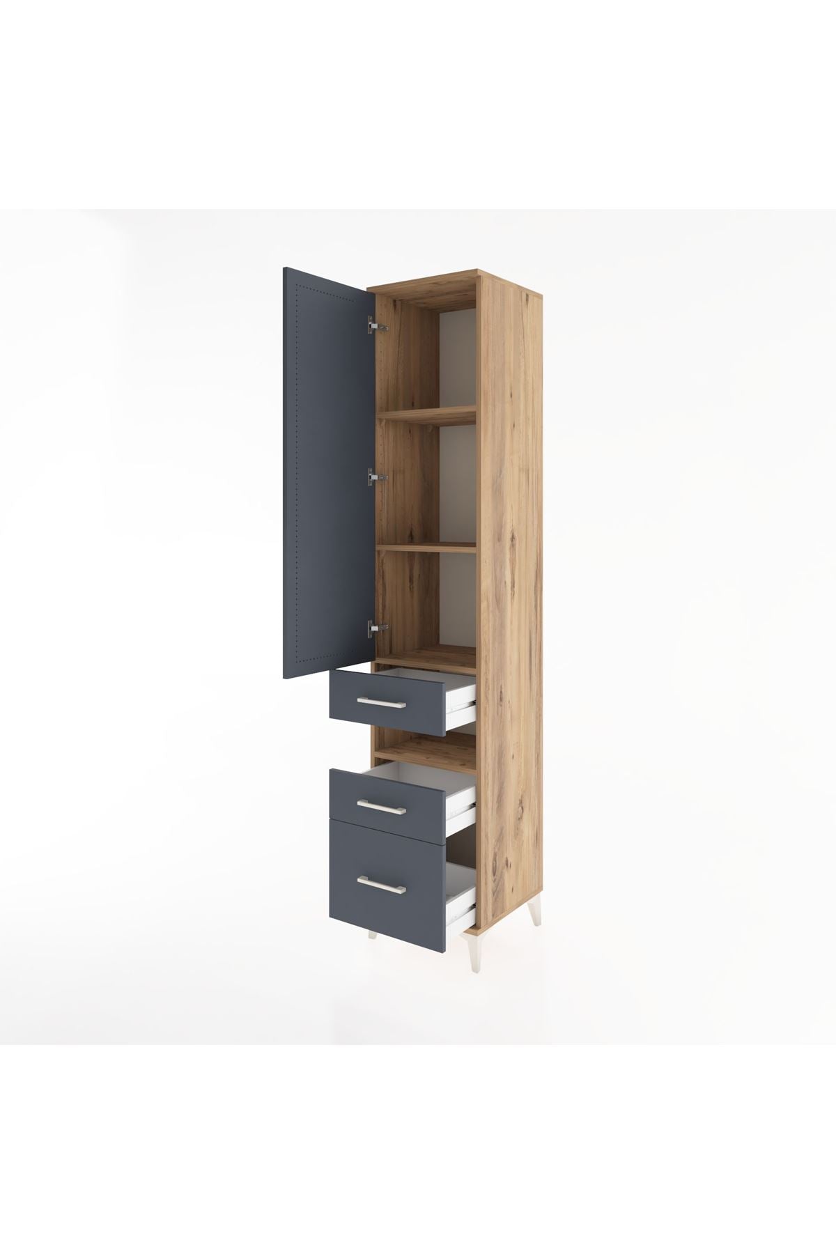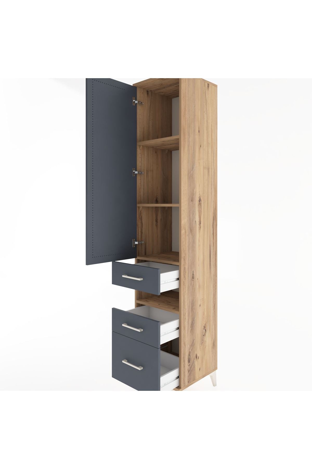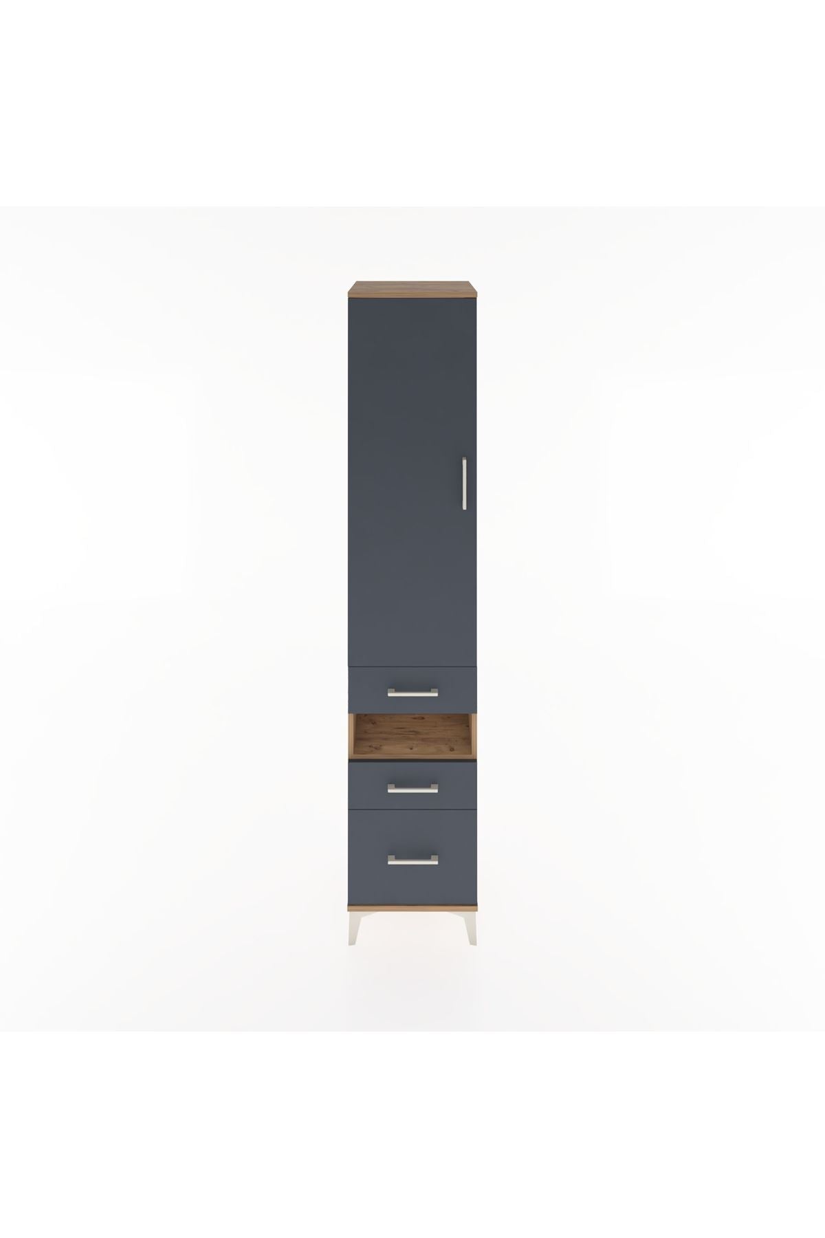 Hyperion Dolap 4 Raflı 3 Çekmeceli Tek Kapaklı 44x44x221 Çam-Antrasit
