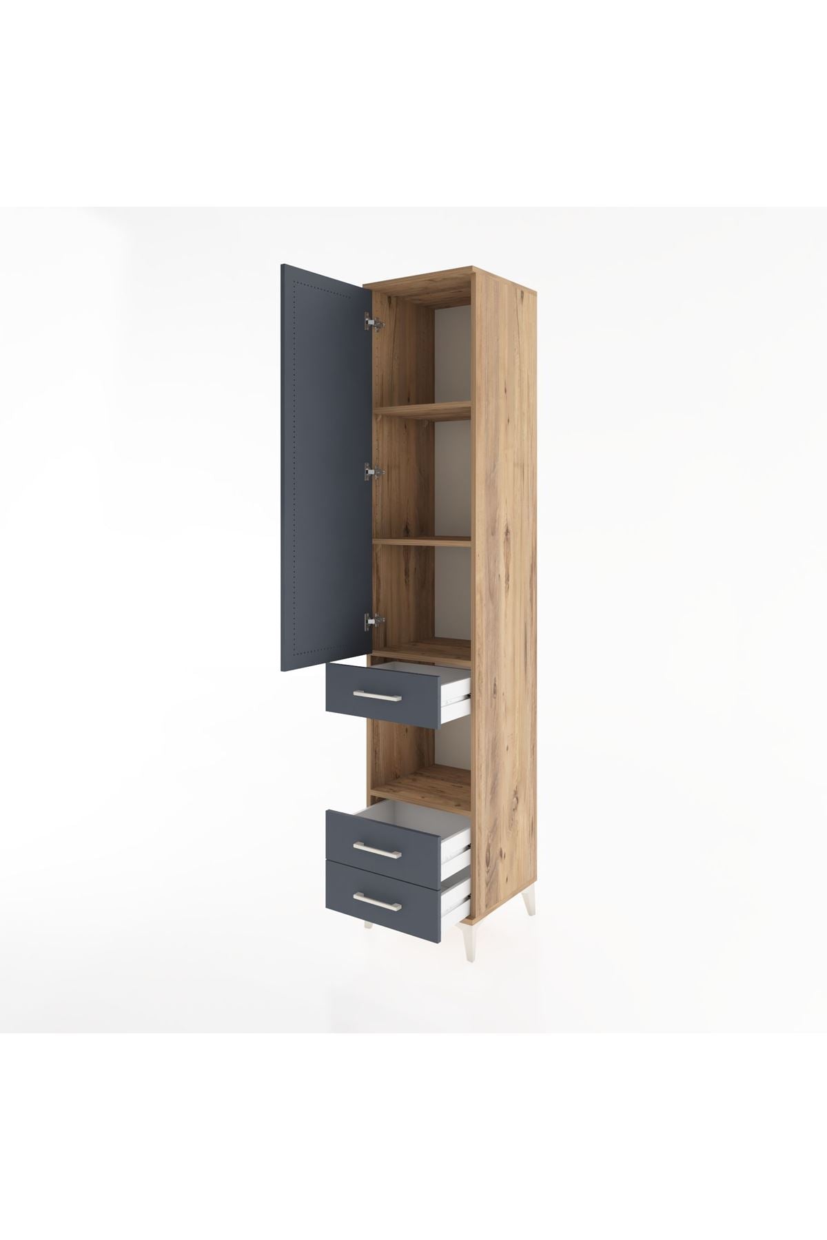 Hyperion Dolap 4 Raflı 3 Çekmeceli Tek Kapaklı 44x44x221 Çam-Antrasit