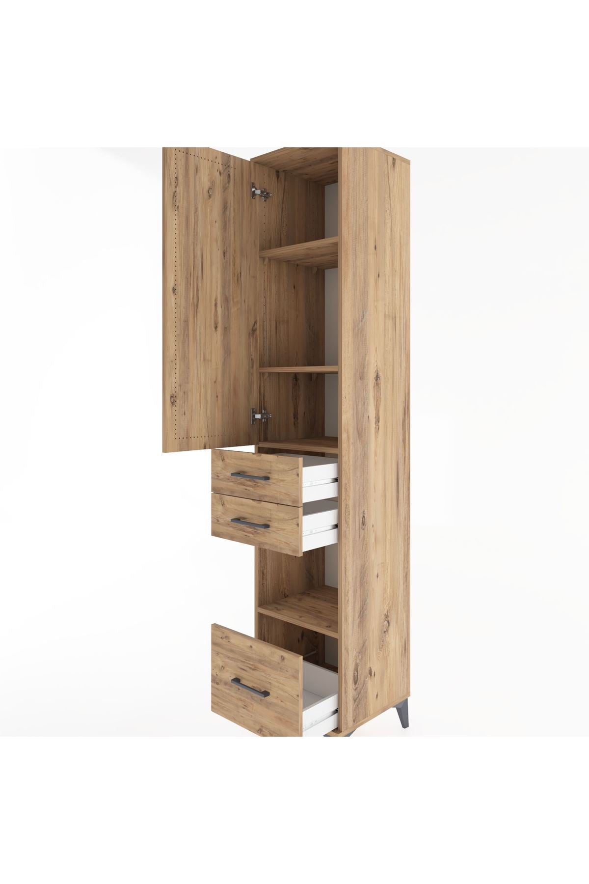 Hyperion Dolap 4 Raflı 3 Çekmeceli Tek Kapaklı 44x44x221 Çam-Çam