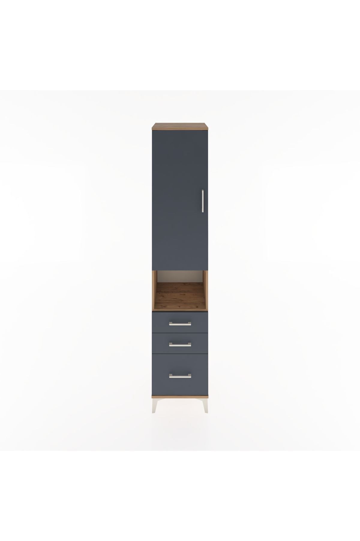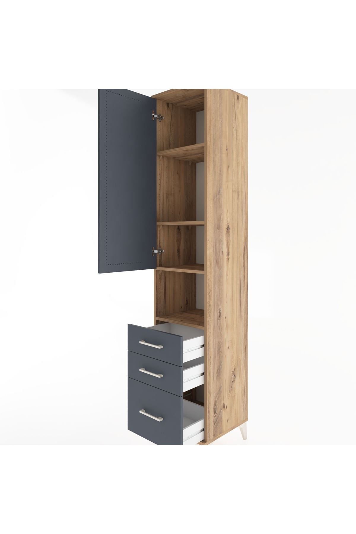 Hyperion Dolap 4 Raflı 3 Çekmeceli Tek Kapaklı 44x44x221 Çam-Antrasit