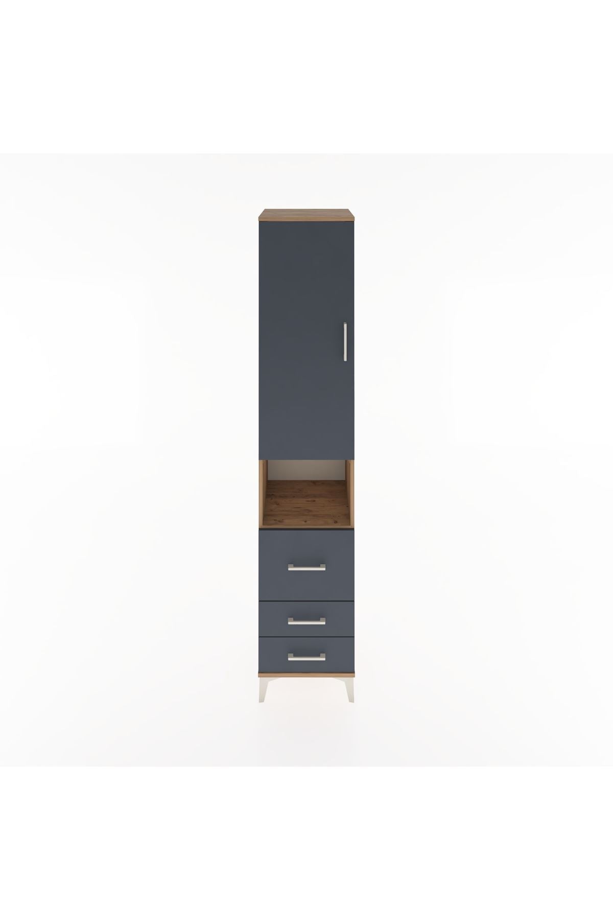 Hyperion Dolap 4 Raflı 3 Çekmeceli Tek Kapaklı 44x44x221 Çam-Antrasit