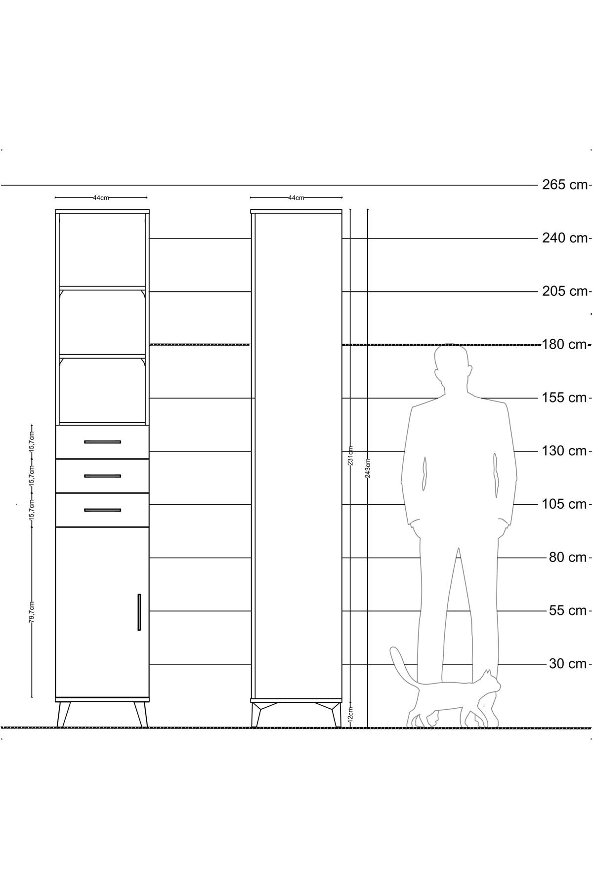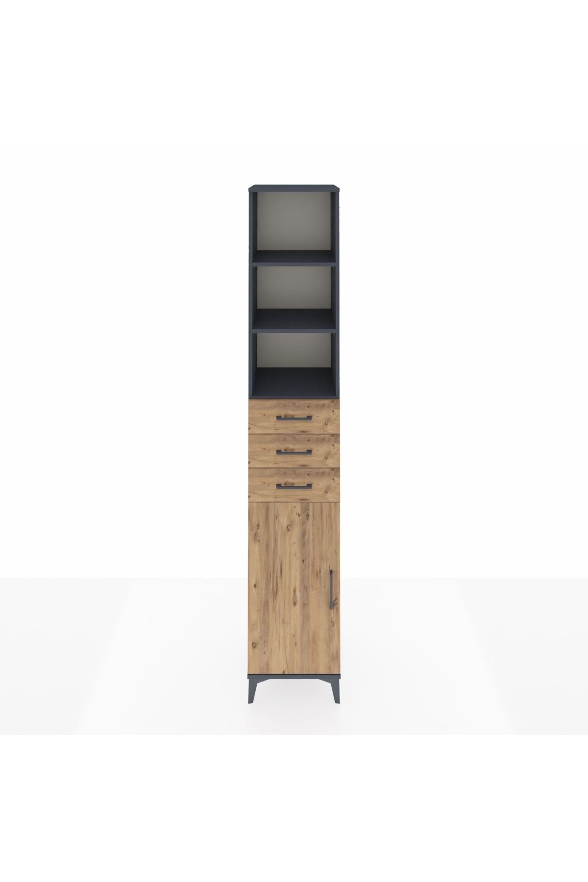 Hyperion Dolap 4 Raflı 3 Çekmeceli Tek Kapaklı 44x44x243 Antrasit-Çam