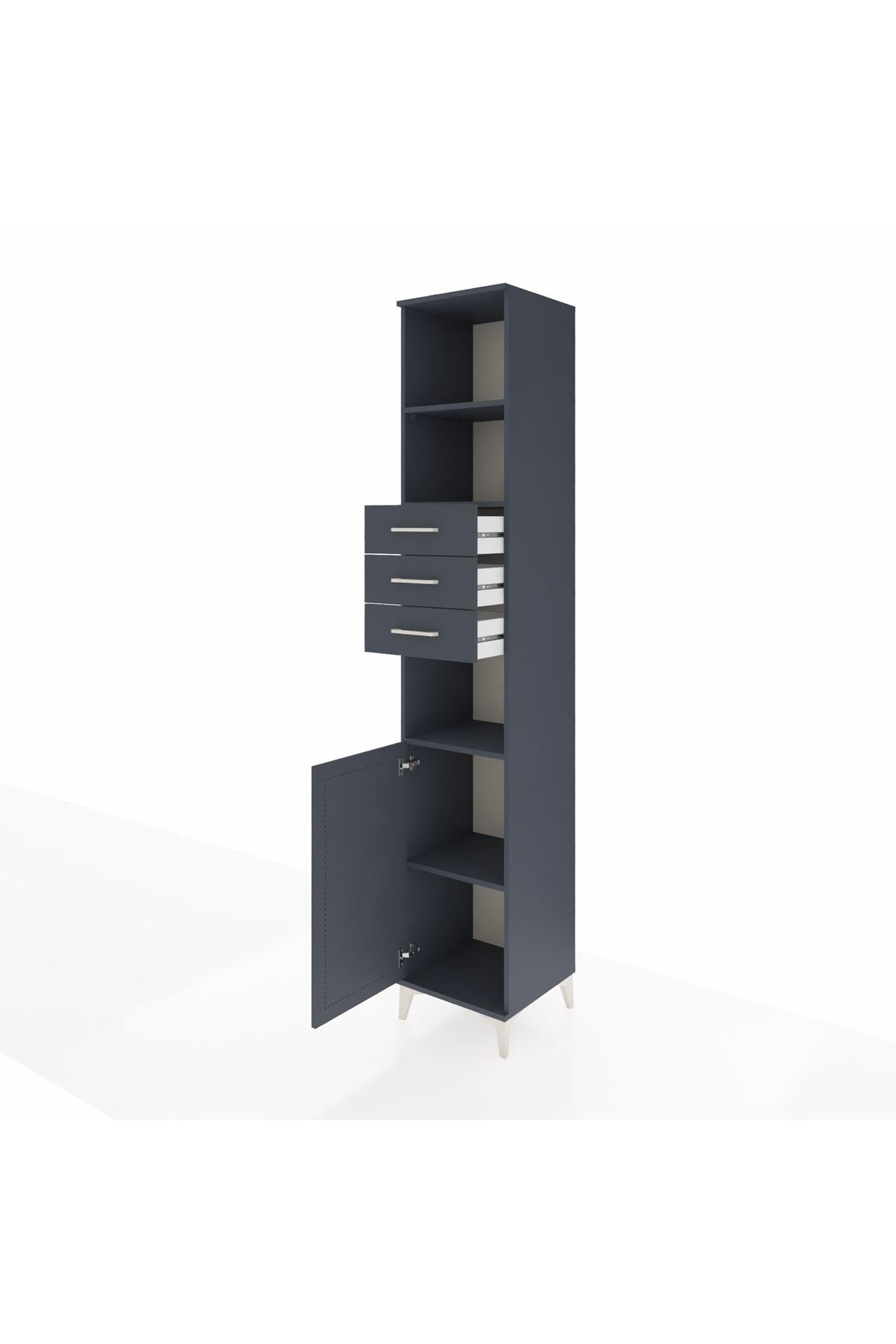 Hyperion Dolap 4 Raflı 3 Çekmeceli Tek Kapaklı 44x44x243 Antrasit-Antrasit