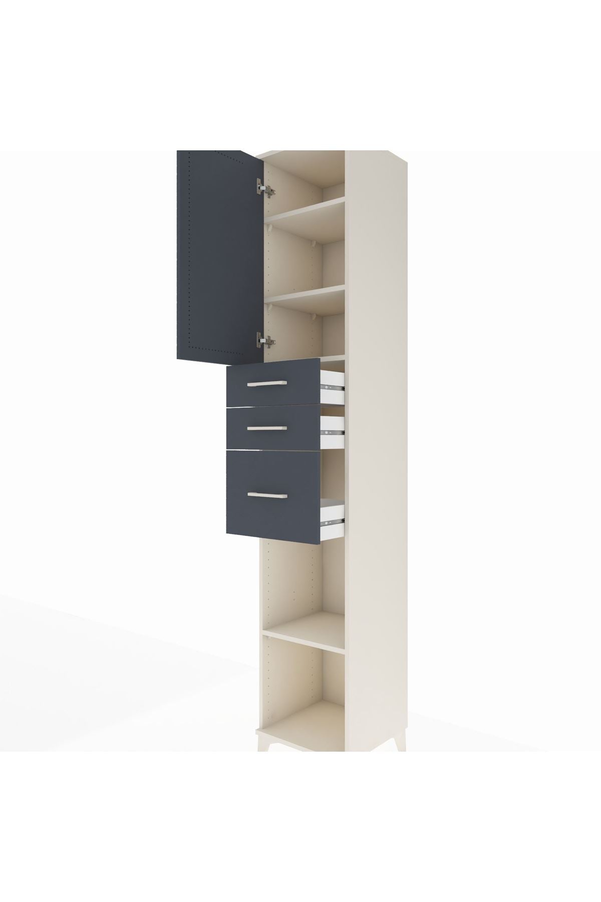 Hyperion Dolap 4 Raflı 3 Çekmeceli Tek Kapaklı 44x44x243 Aytaşı-Antrasit