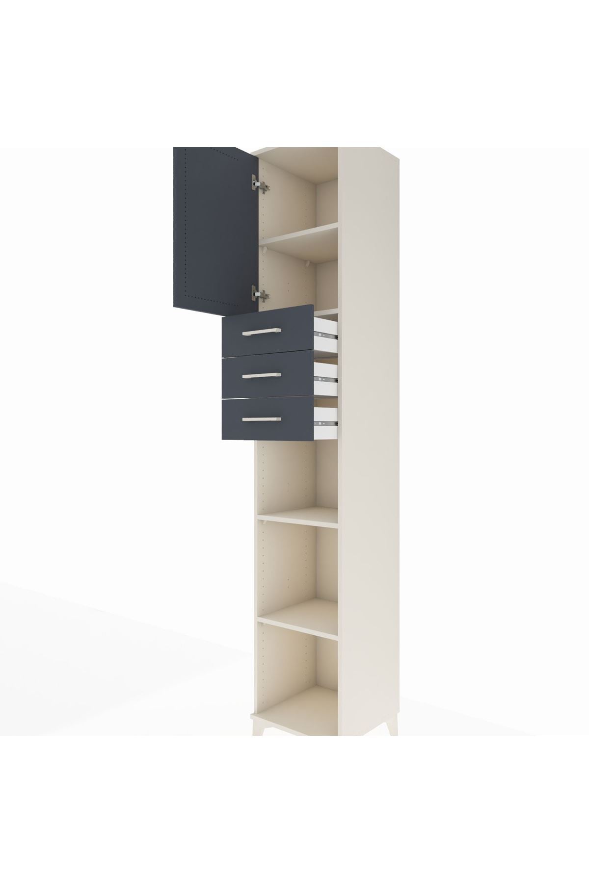 Hyperion Dolap 4 Raflı 3 Çekmeceli Tek Kapaklı 44x44x243 Aytaşı-Antrasit