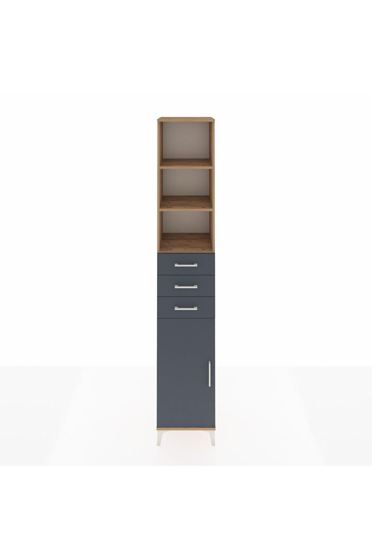 Hyperion Dolap 4 Raflı 3 Çekmeceli Tek Kapaklı 44x44x243 Çam-Antrasit