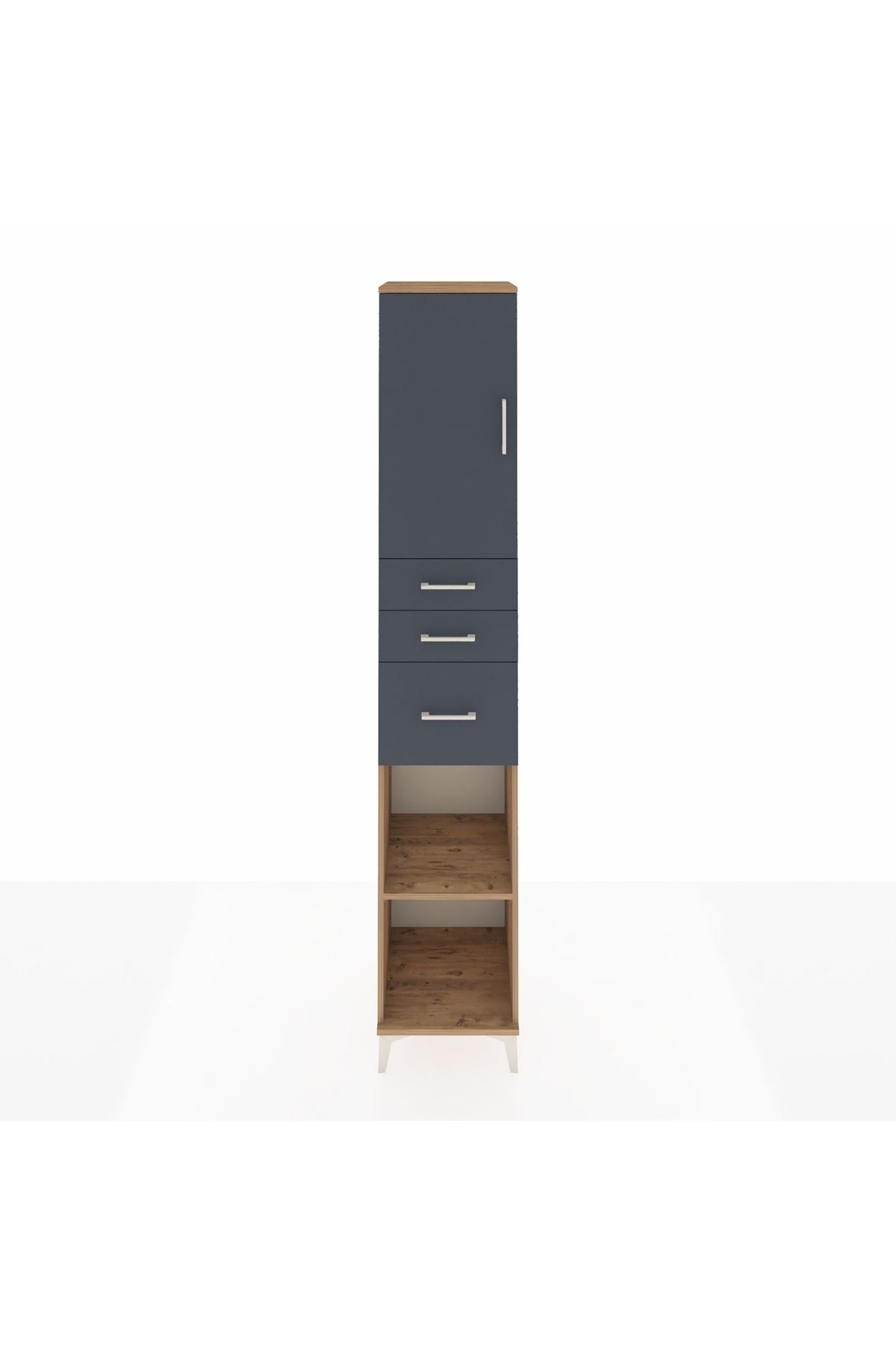Hyperion Dolap 4 Raflı 3 Çekmeceli Tek Kapaklı 44x44x243 Çam-Antrasit