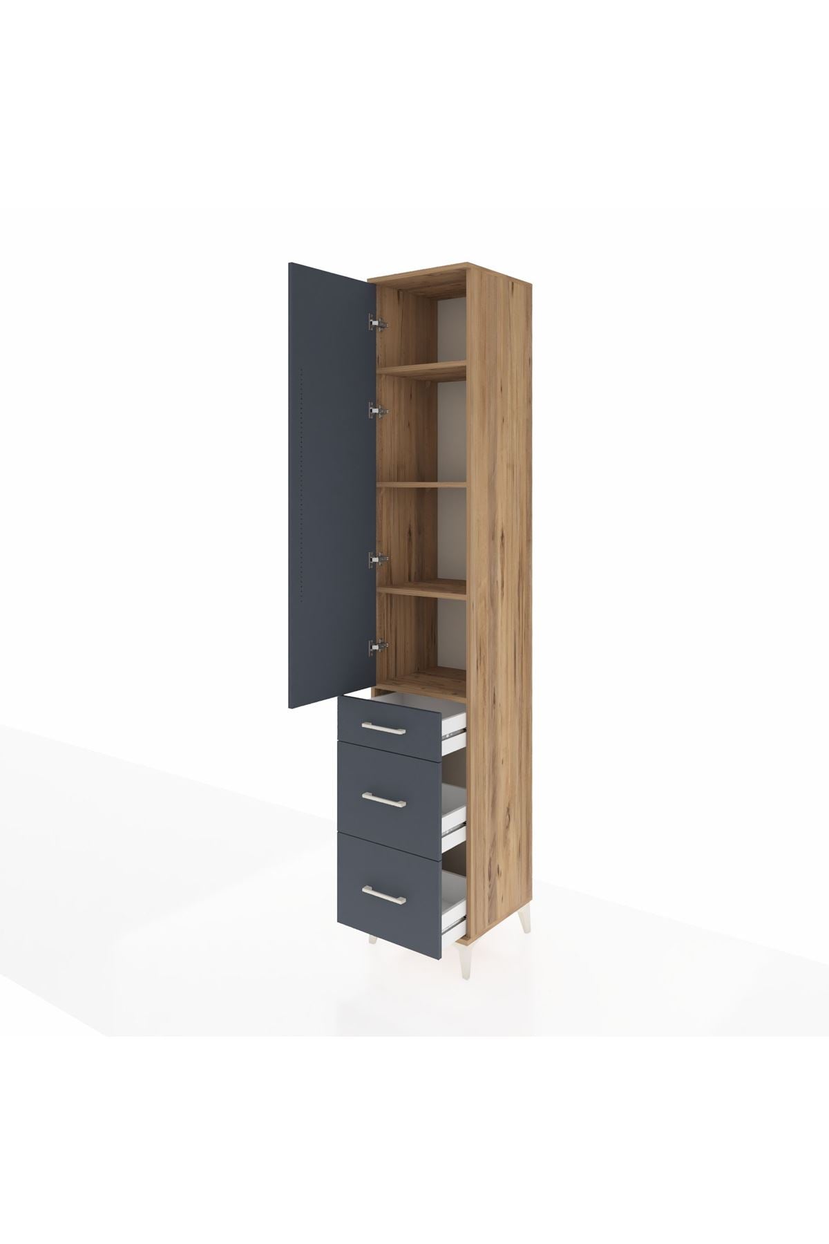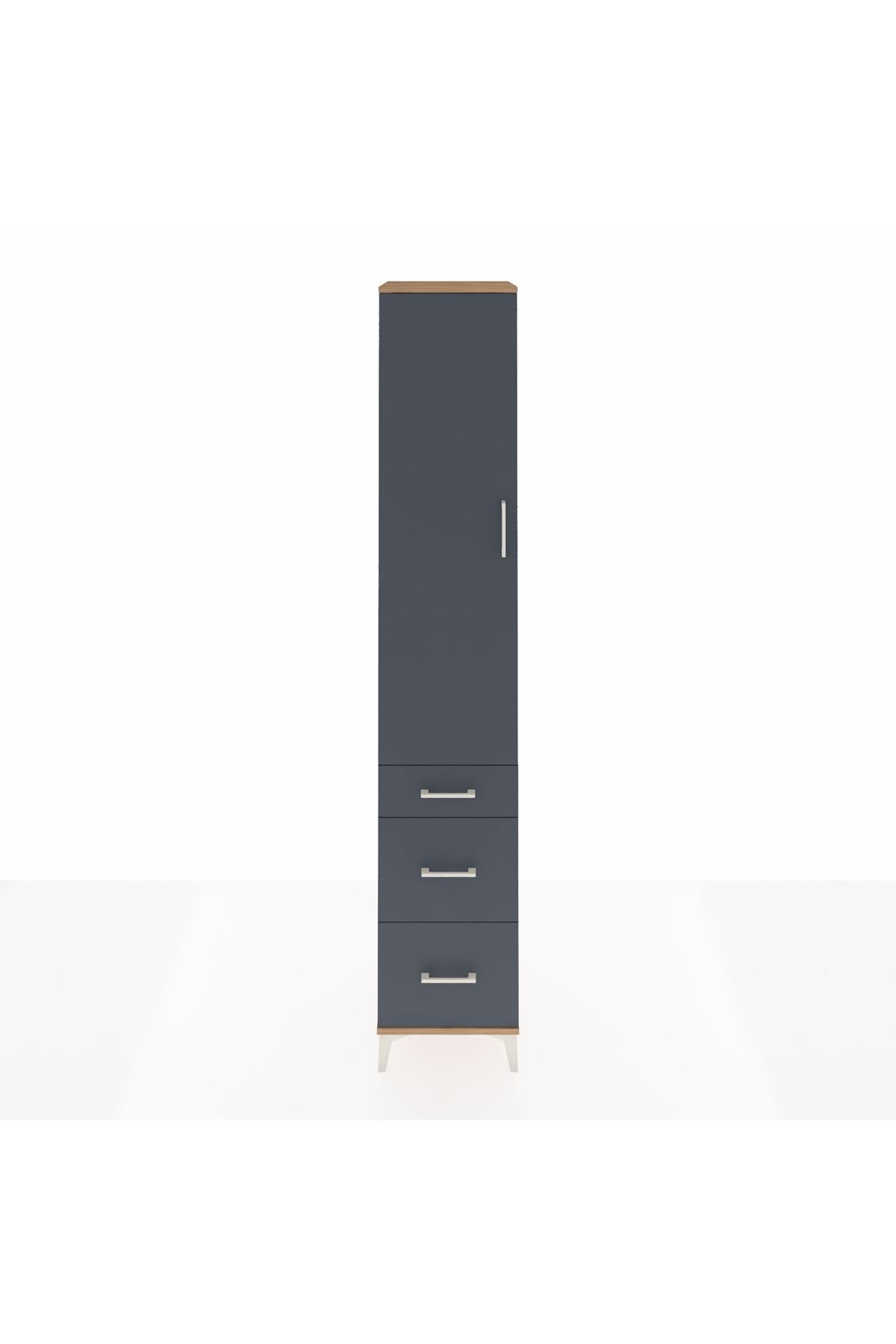Hyperion Dolap 4 Raflı 3 Çekmeceli Tek Kapaklı 44x44x243 Çam-Antrasit