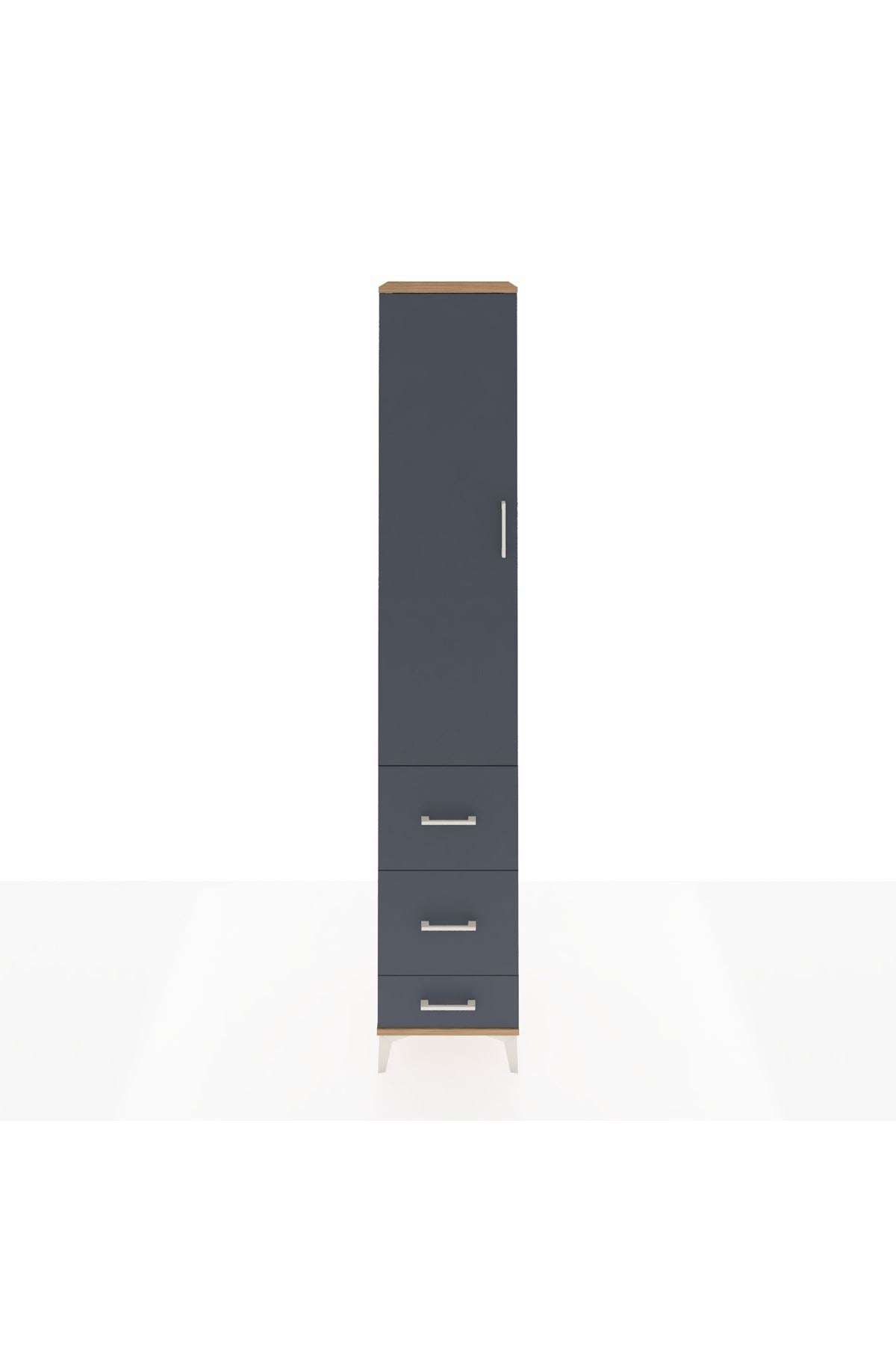 Hyperion Dolap 4 Raflı 3 Çekmeceli Tek Kapaklı 44x44x243 Çam-Antrasit