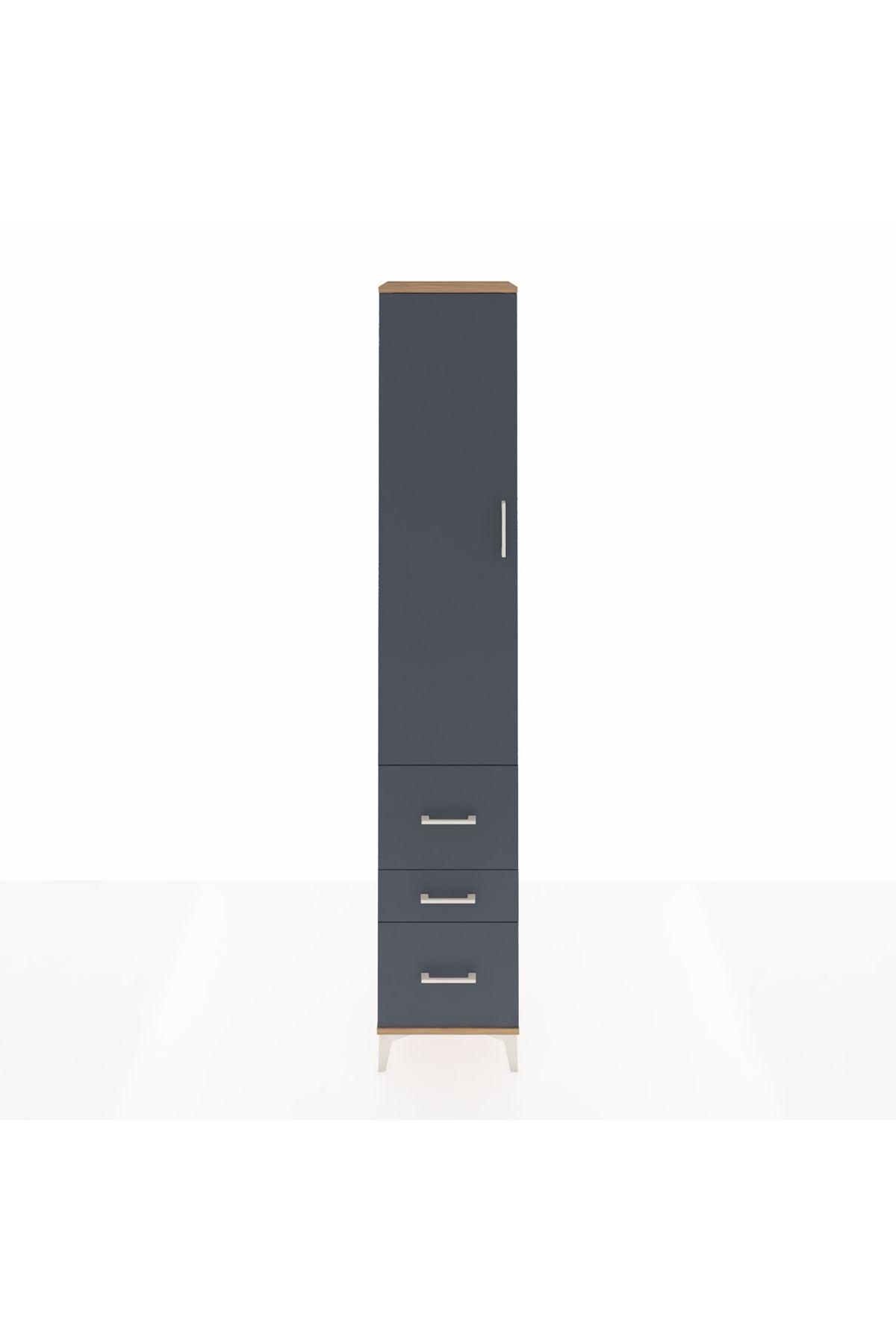 Hyperion Dolap 4 Raflı 3 Çekmeceli Tek Kapaklı 44x44x243 Çam-Antrasit