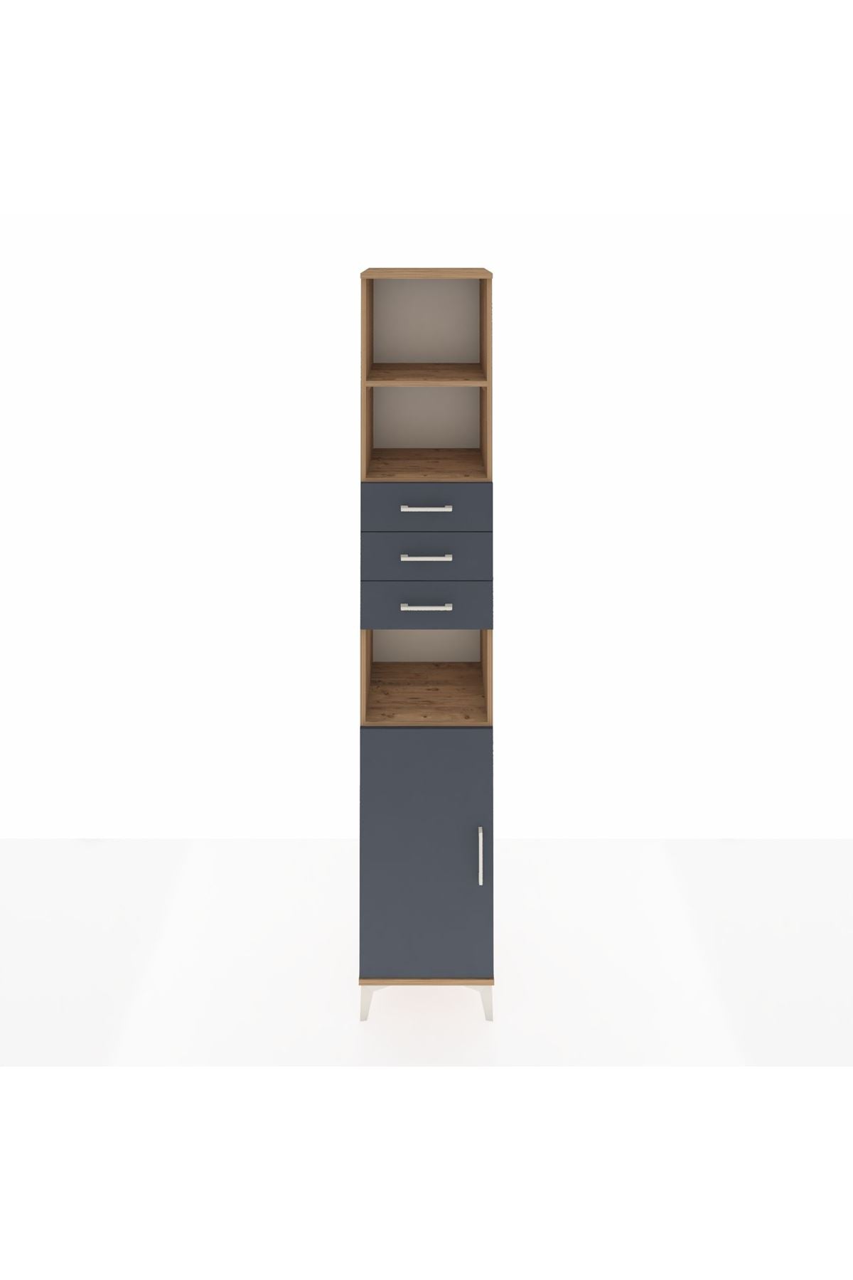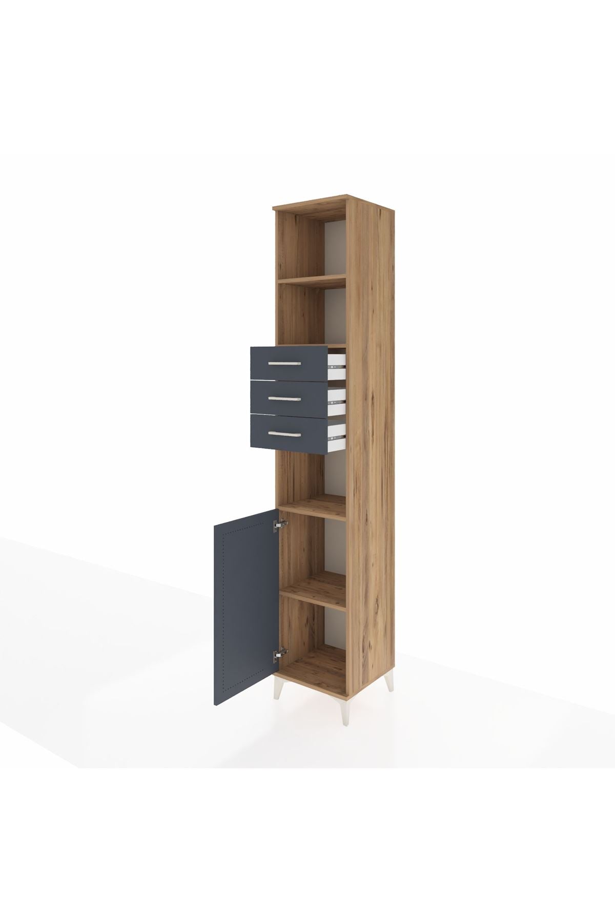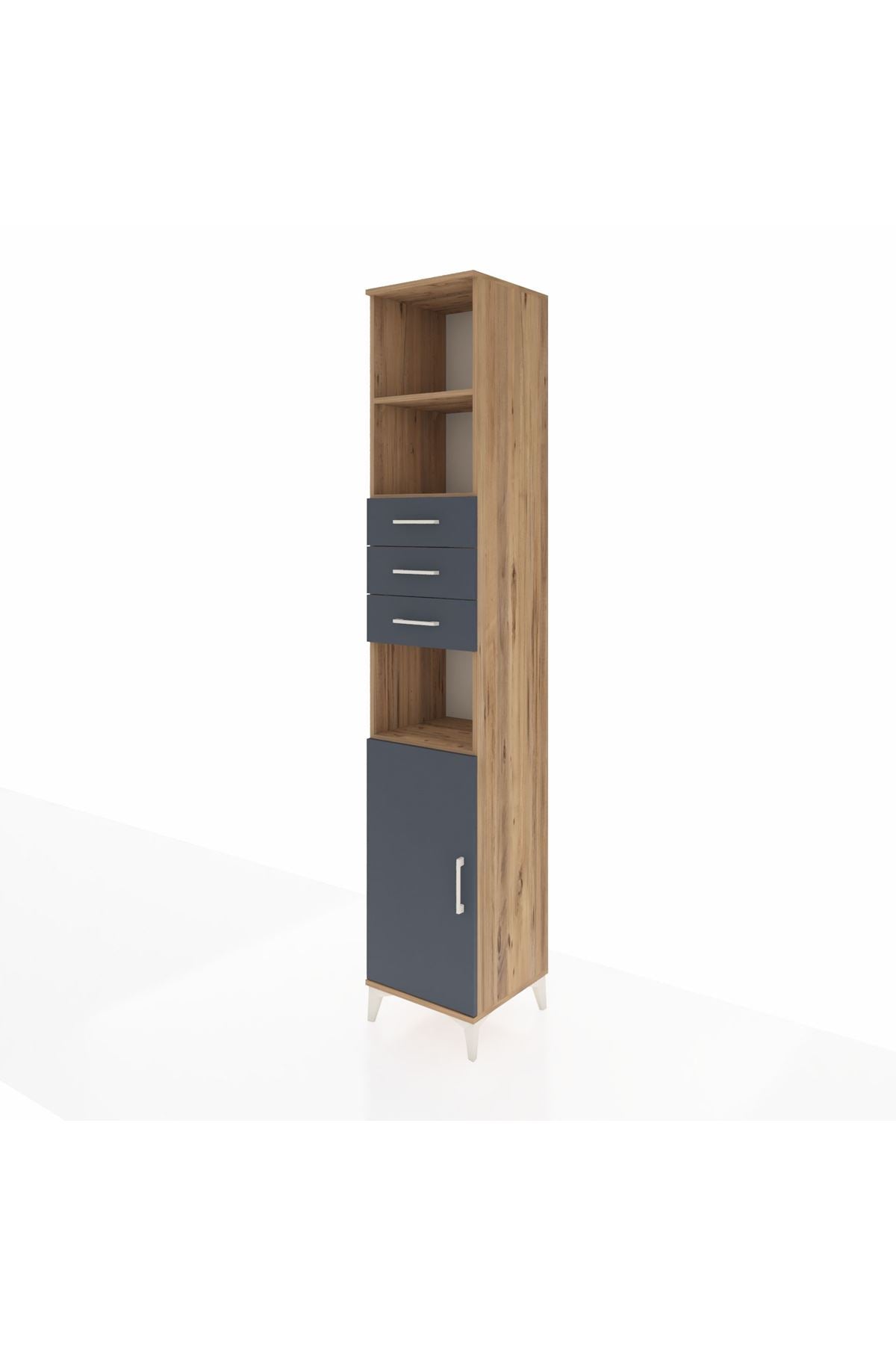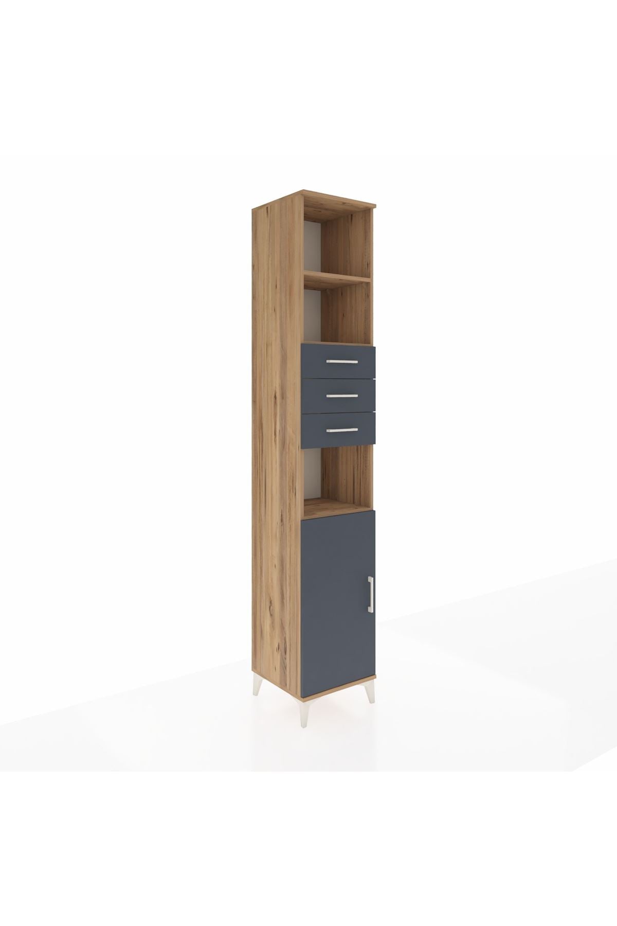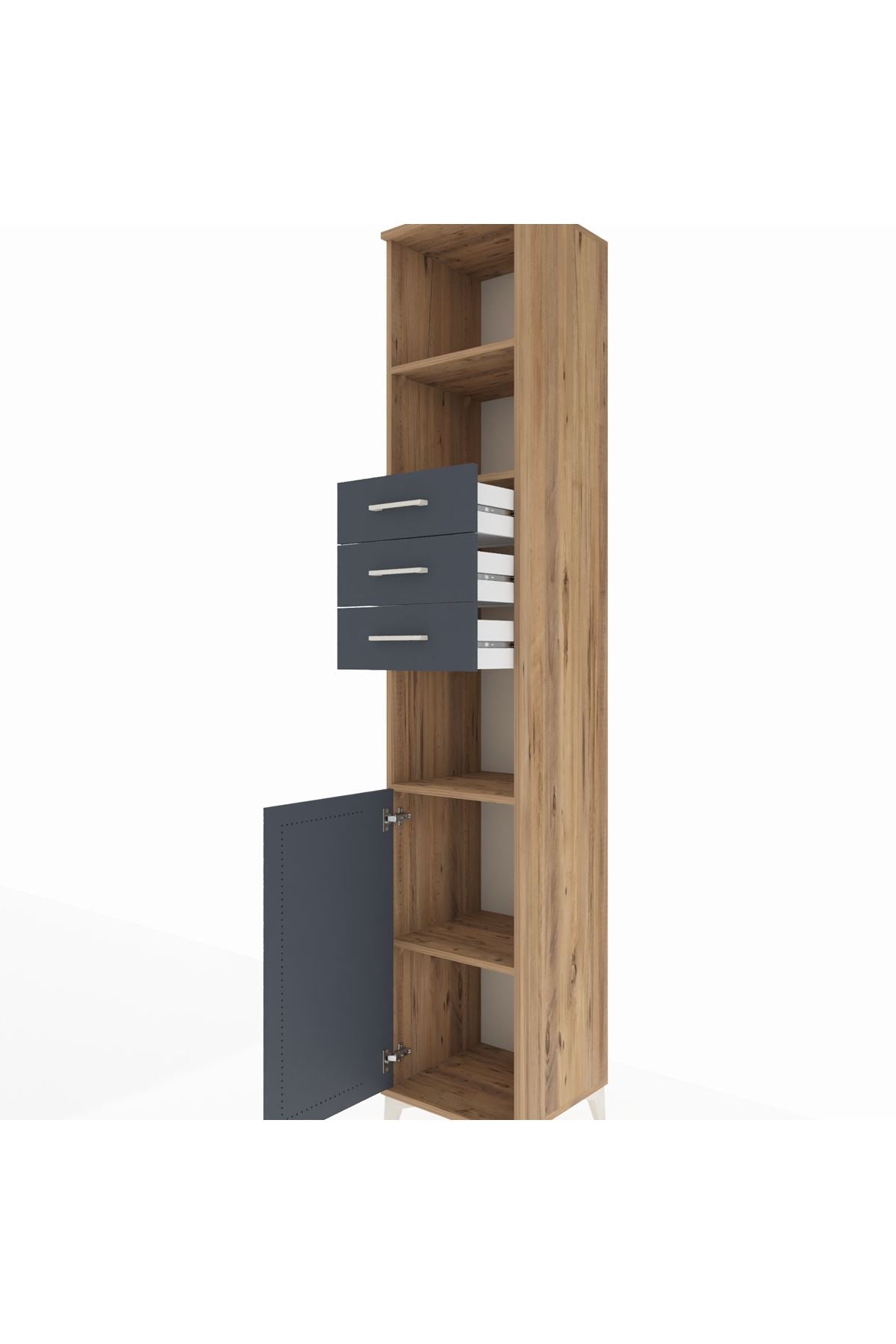 Hyperion Dolap 4 Raflı 3 Çekmeceli Tek Kapaklı 44x44x243 Çam-Antrasit