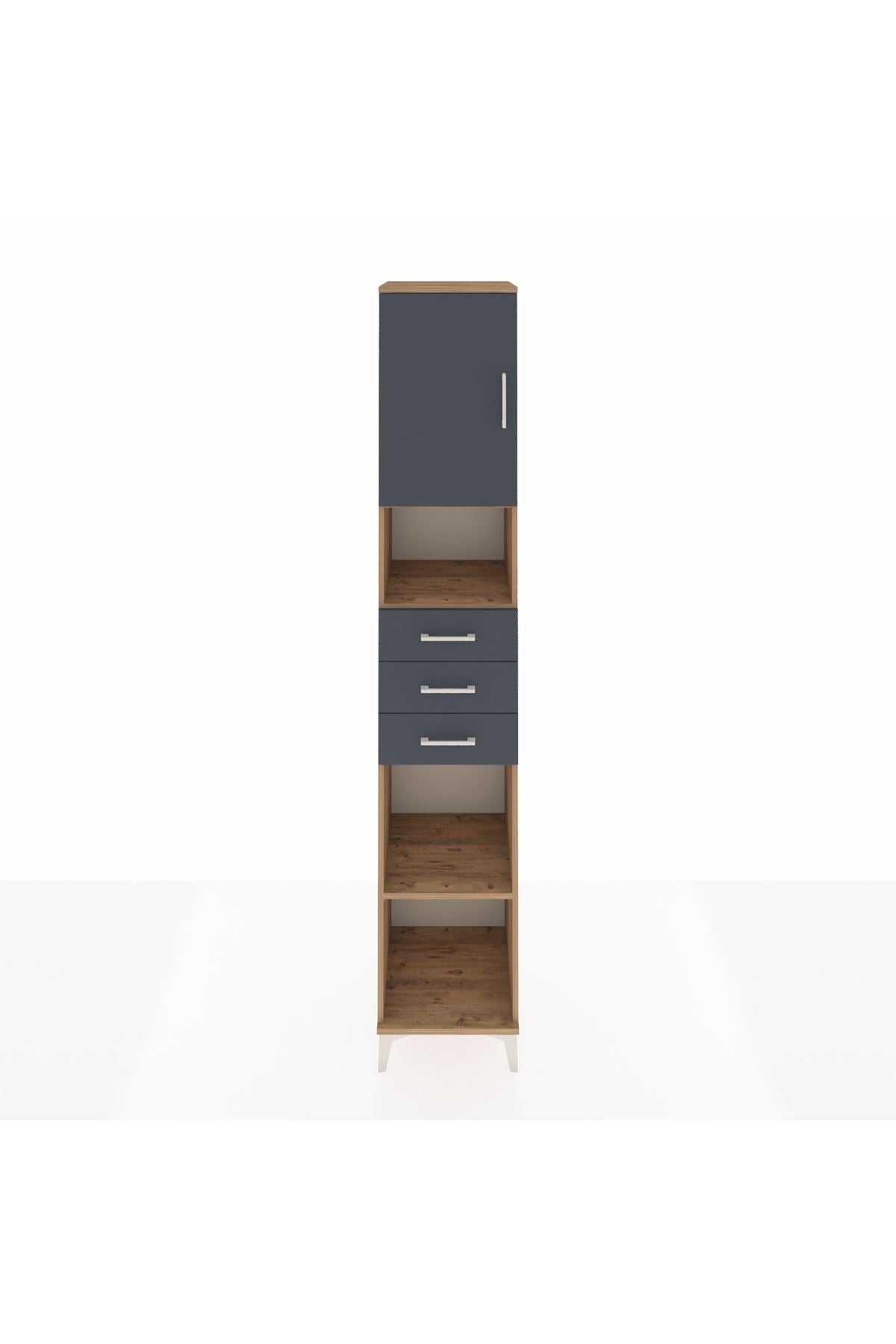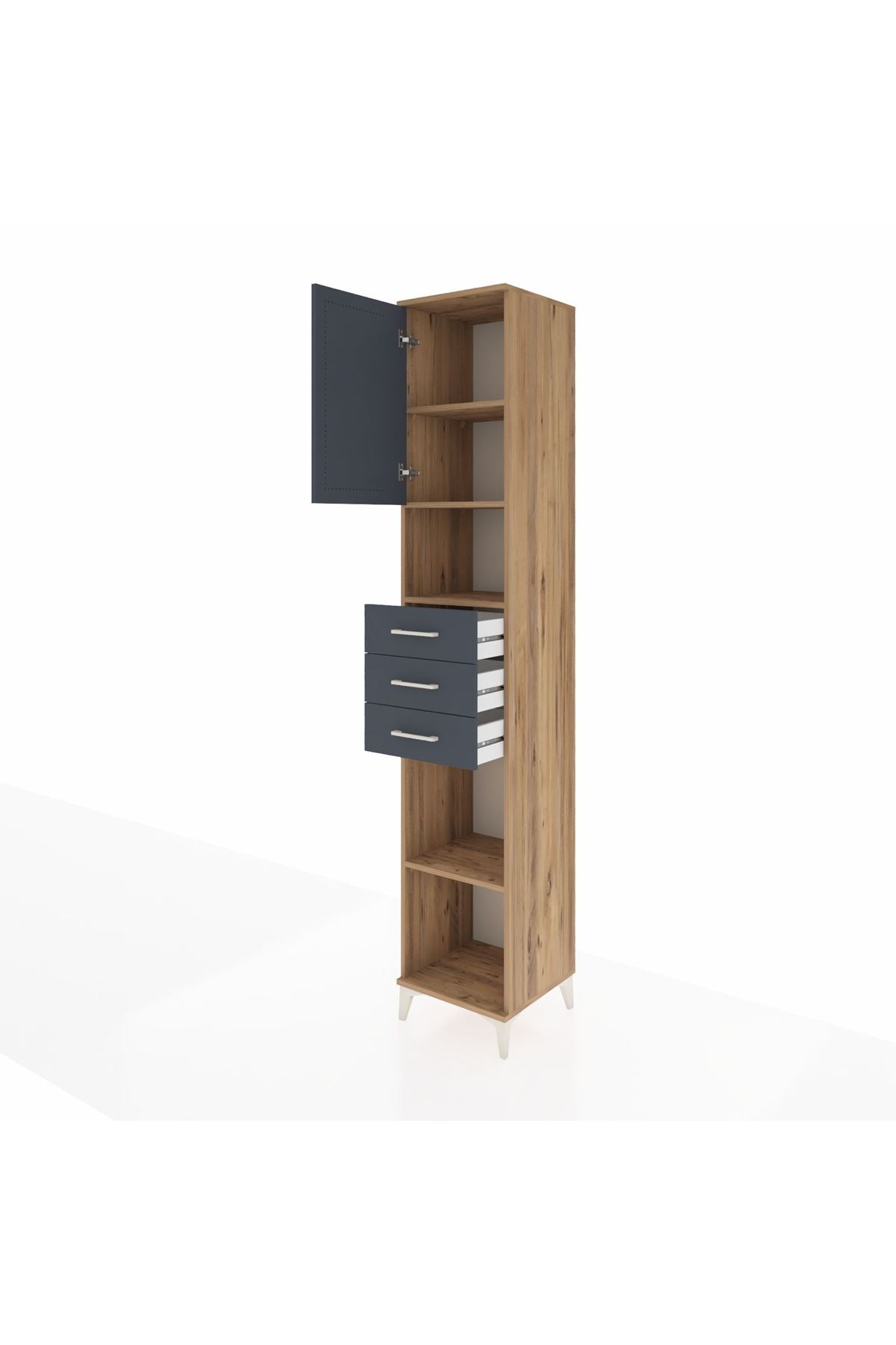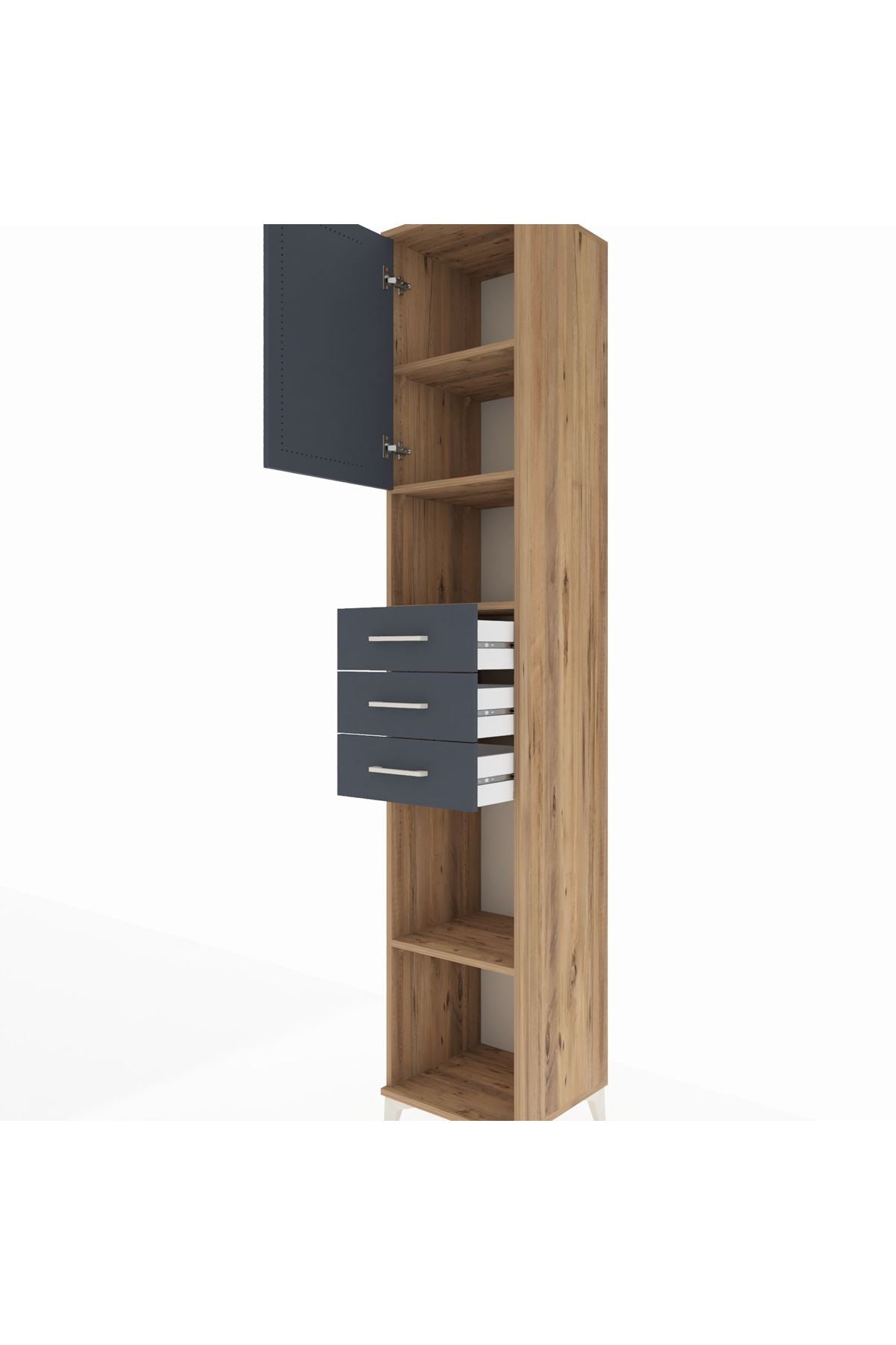 Hyperion Dolap 4 Raflı 3 Çekmeceli Tek Kapaklı 44x44x243 Çam-Antrasit