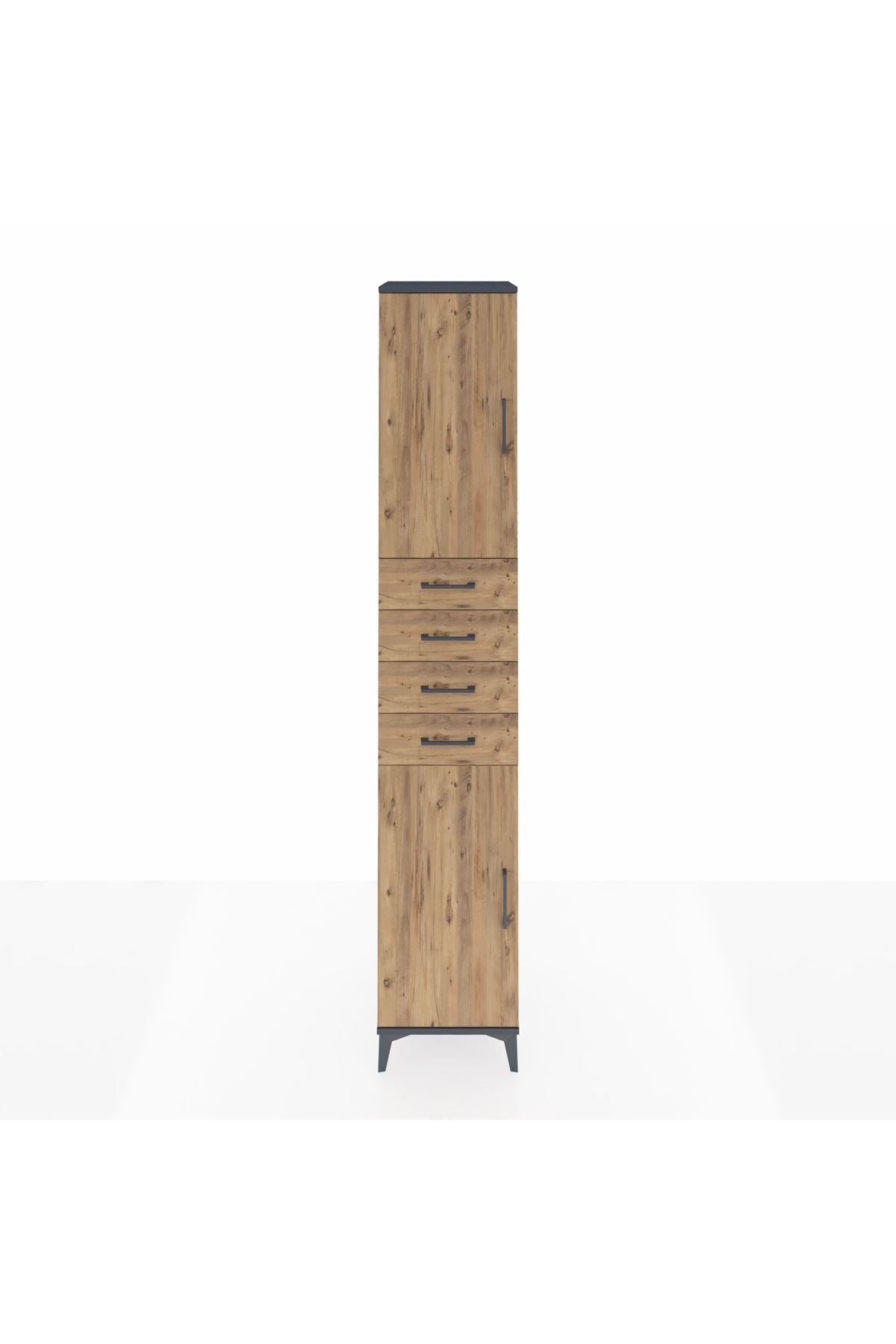 Hyperion Dolap 4 Raflı 4 Çekmeceli 2 Kapaklı 44x44x243 Antrasit-Çam