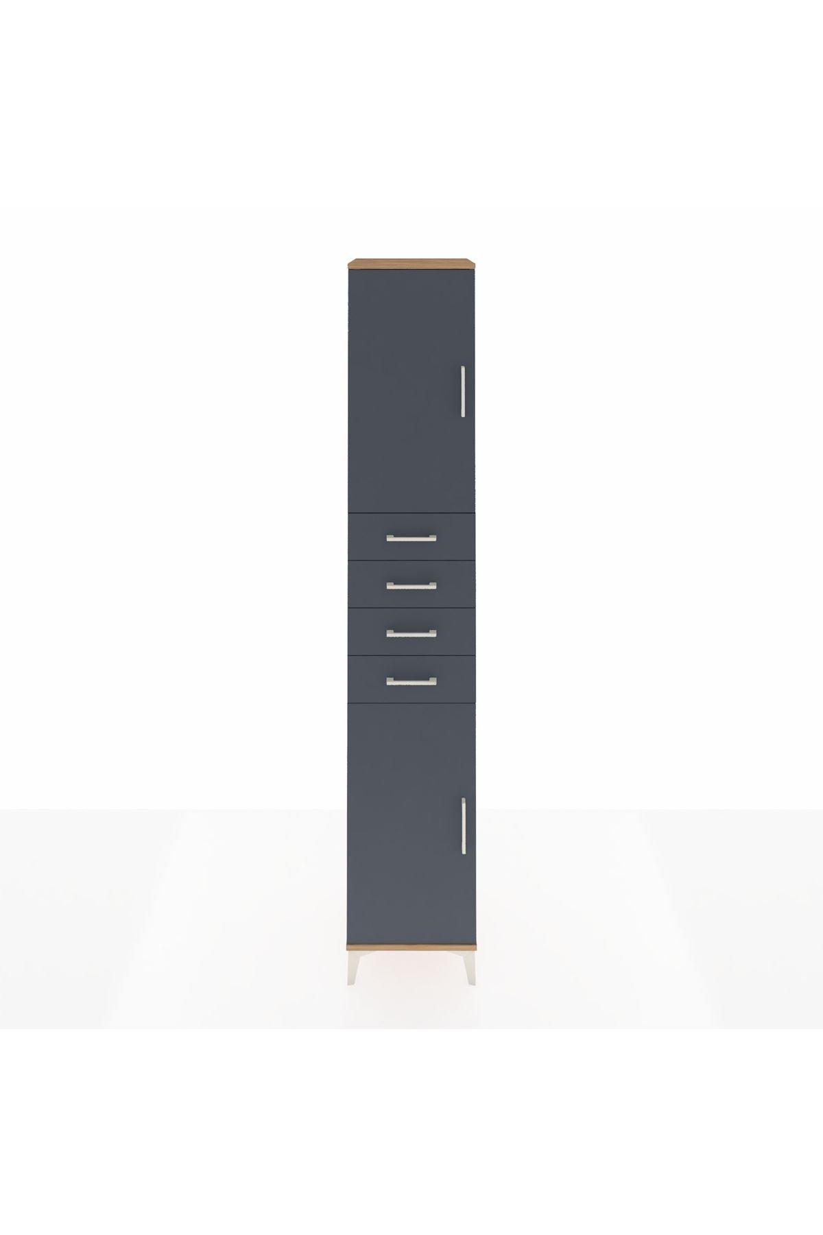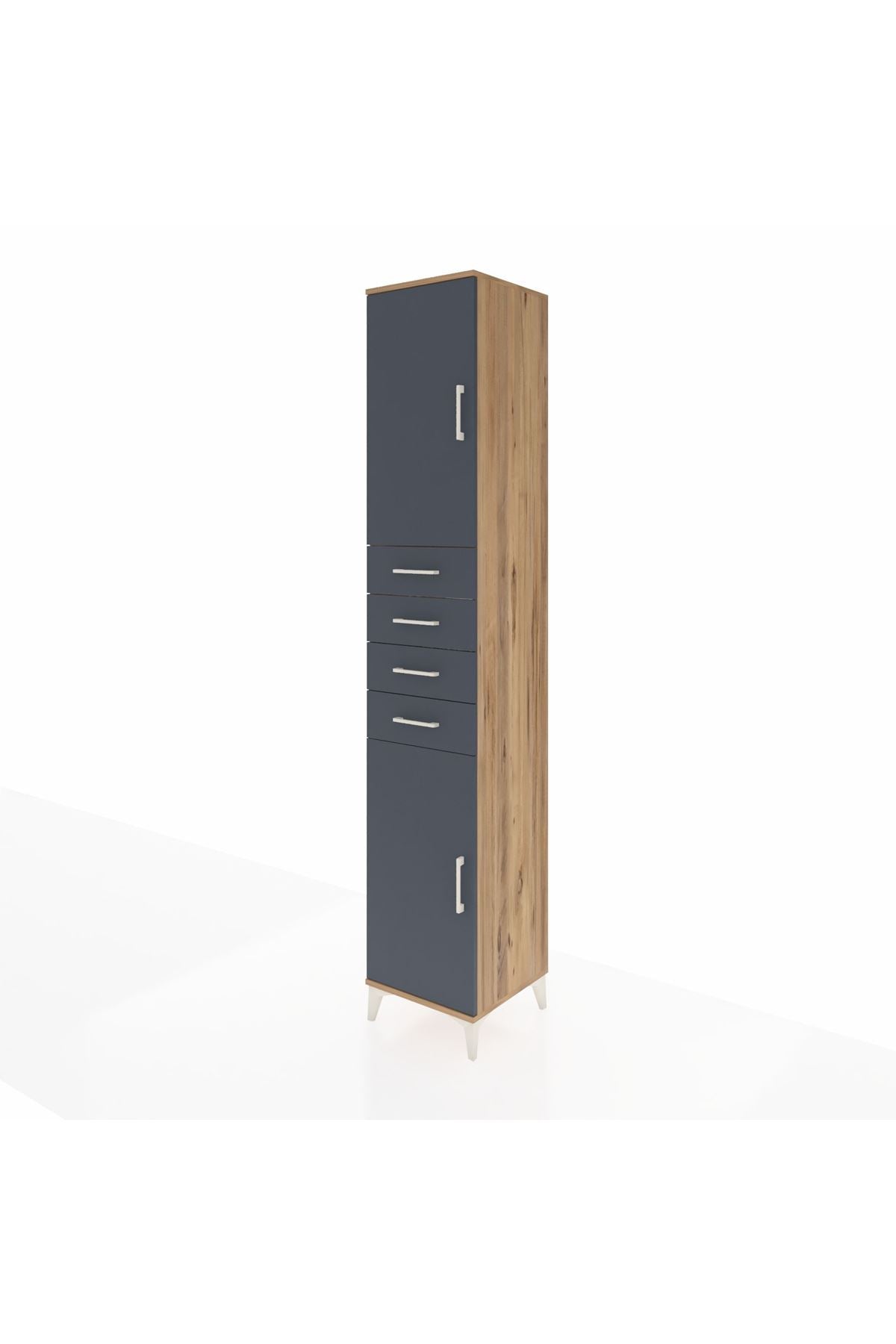 Hyperion Dolap 4 Raflı 4 Çekmeceli 2 Kapaklı 44x44x243 Çam-Antrasit
