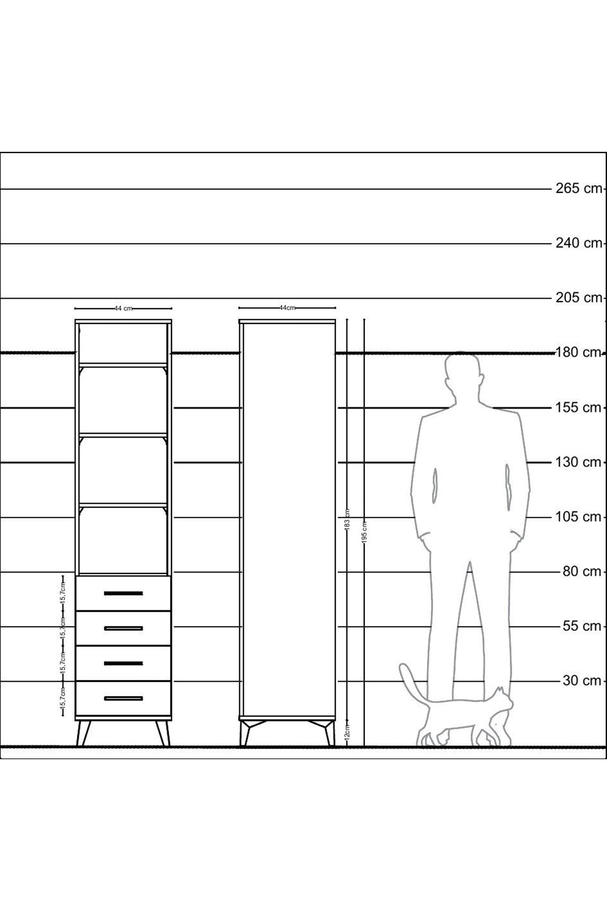 Hyperion Dolap 4 Raflı 4 Çekmeceli 44x44x195 Antrasit-Çam