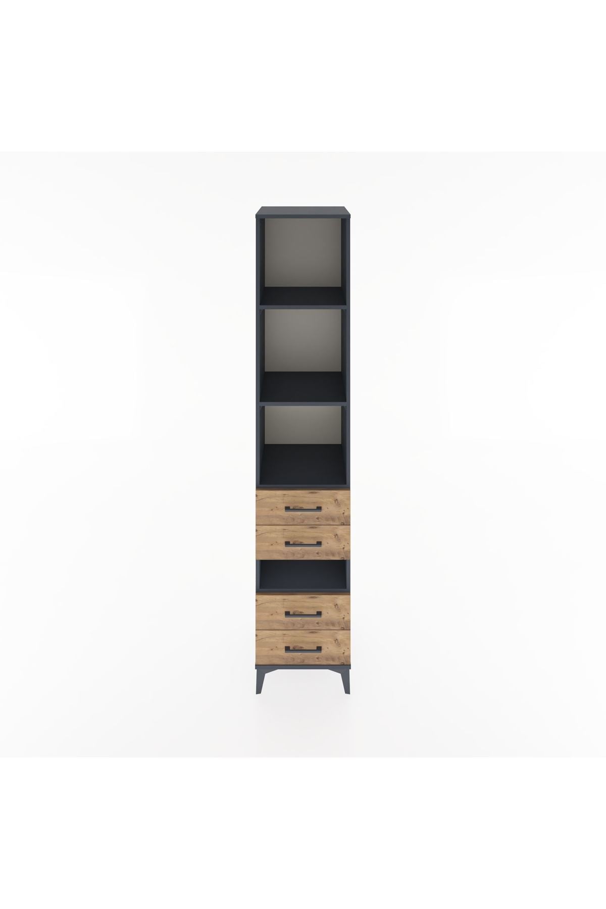 Hyperion Dolap 4 Raflı 4 Çekmeceli 44x44x221 Antrasit-Çam