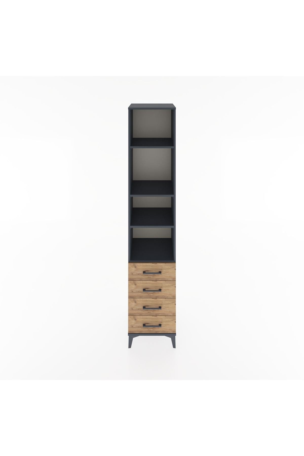 Hyperion Dolap 4 Raflı 4 Çekmeceli 44x44x221 Antrasit-Çam