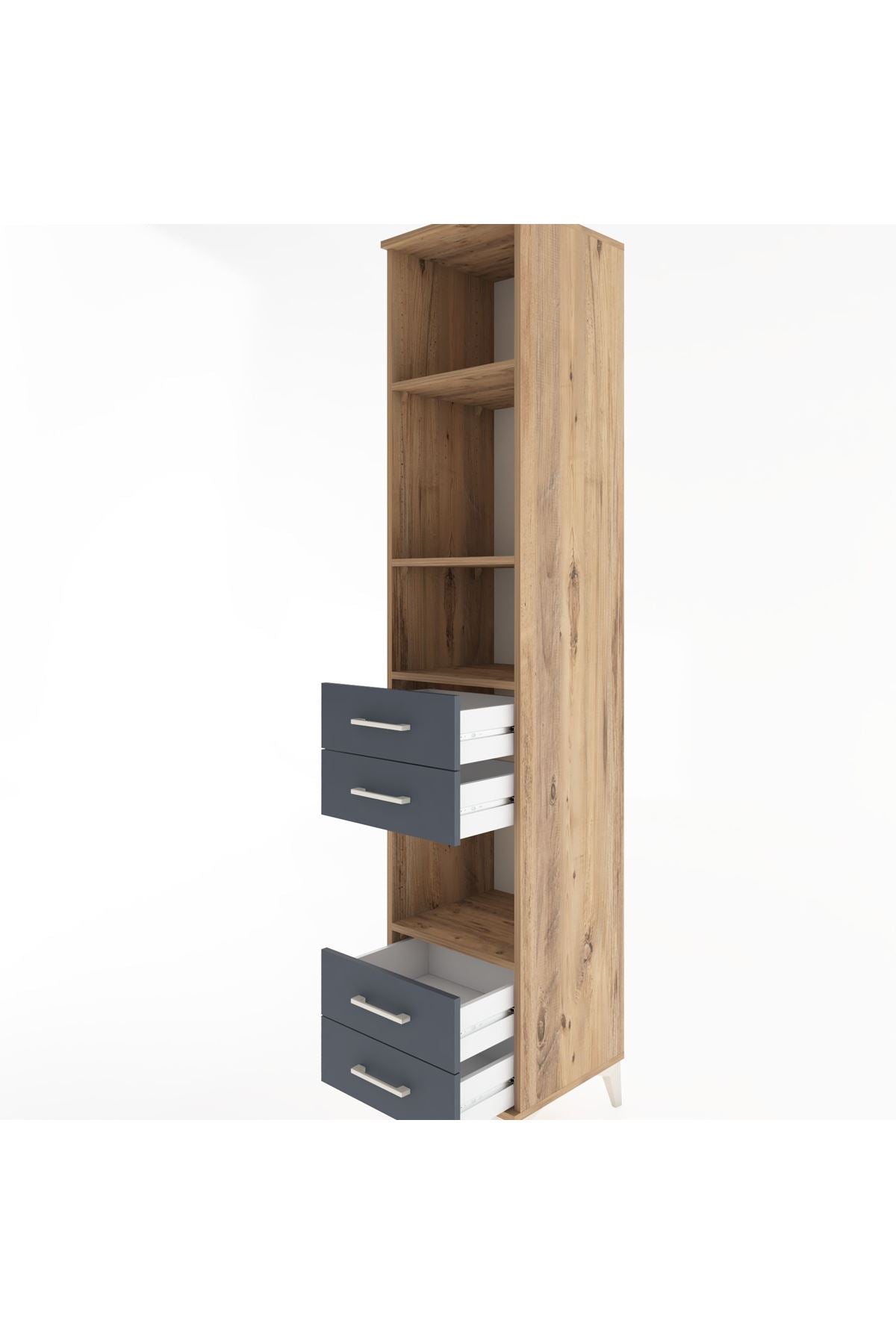 Hyperion Dolap 4 Raflı 4 Çekmeceli 44x44x221 Çam-Antrasit