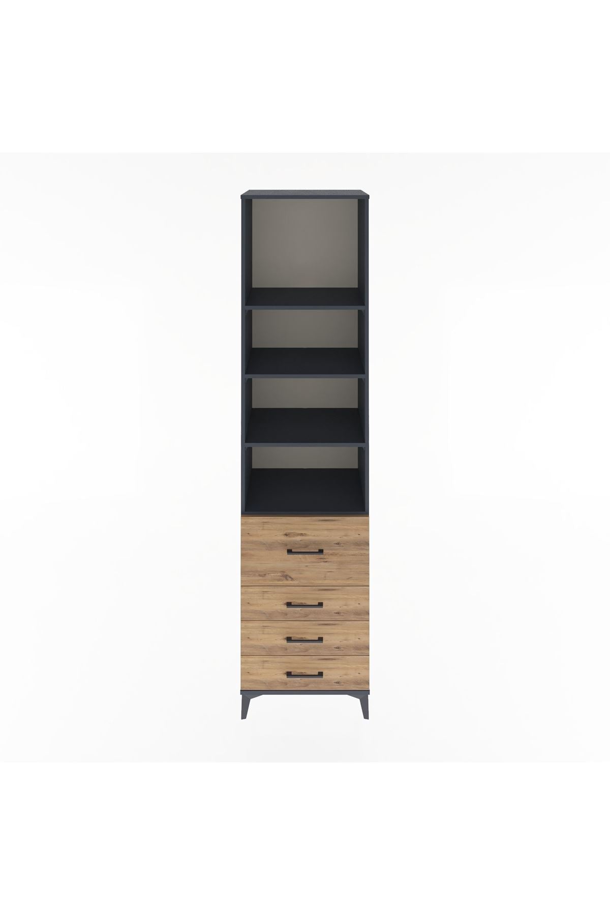 Hyperion Dolap 4 Raflı 4 Çekmeceli 60x44x243 Antrasit-Çam