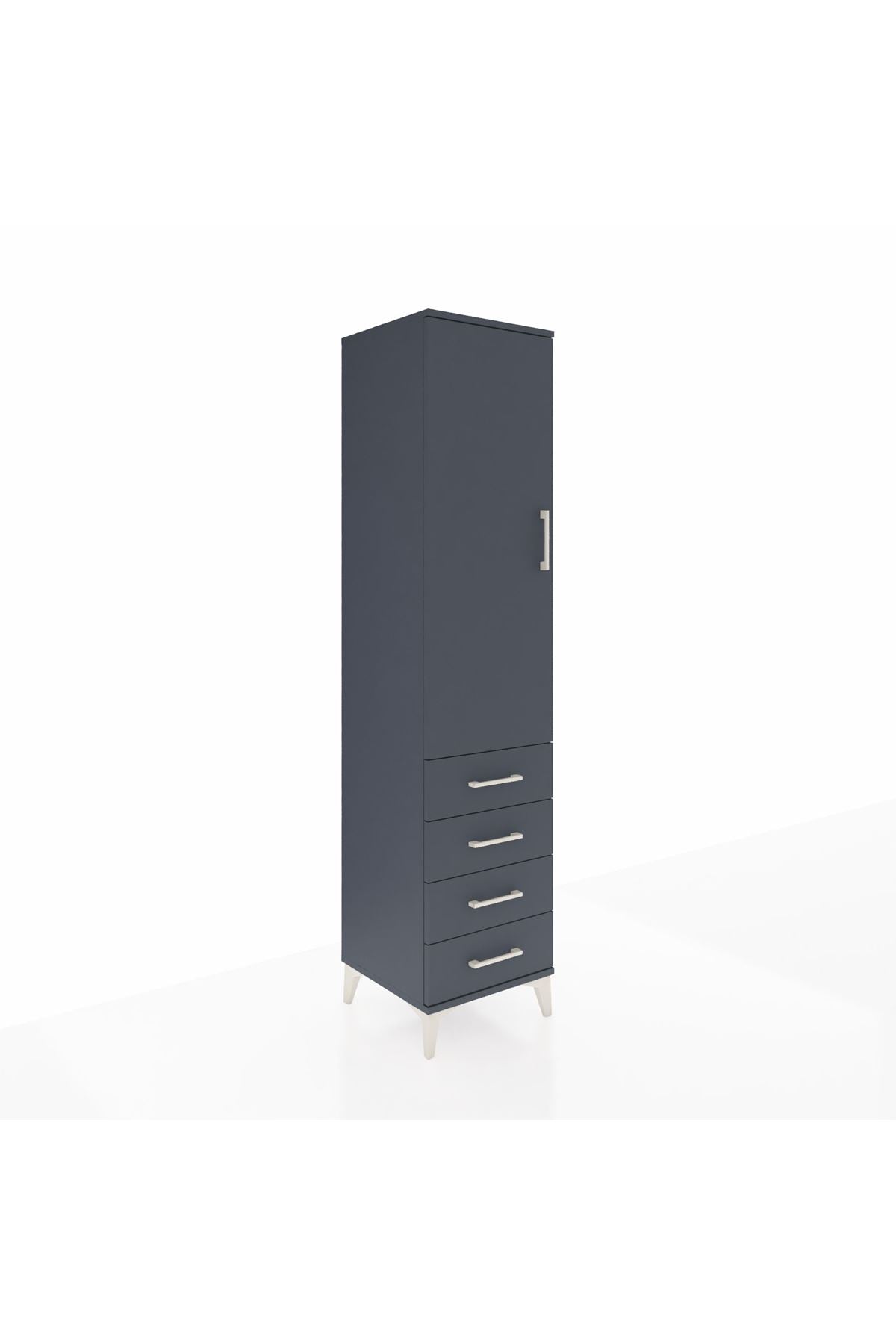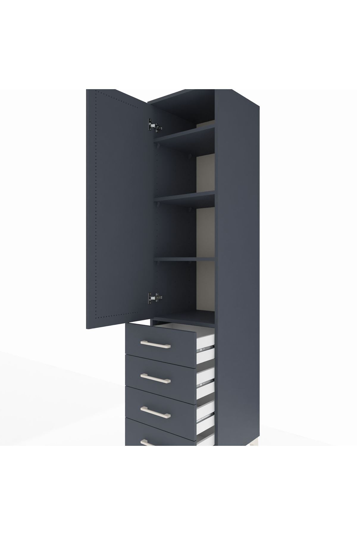Hyperion Dolap 4 Raflı 4 Çekmeceli Tek Kapaklı 44x44x195 Antrasit-Antrasit