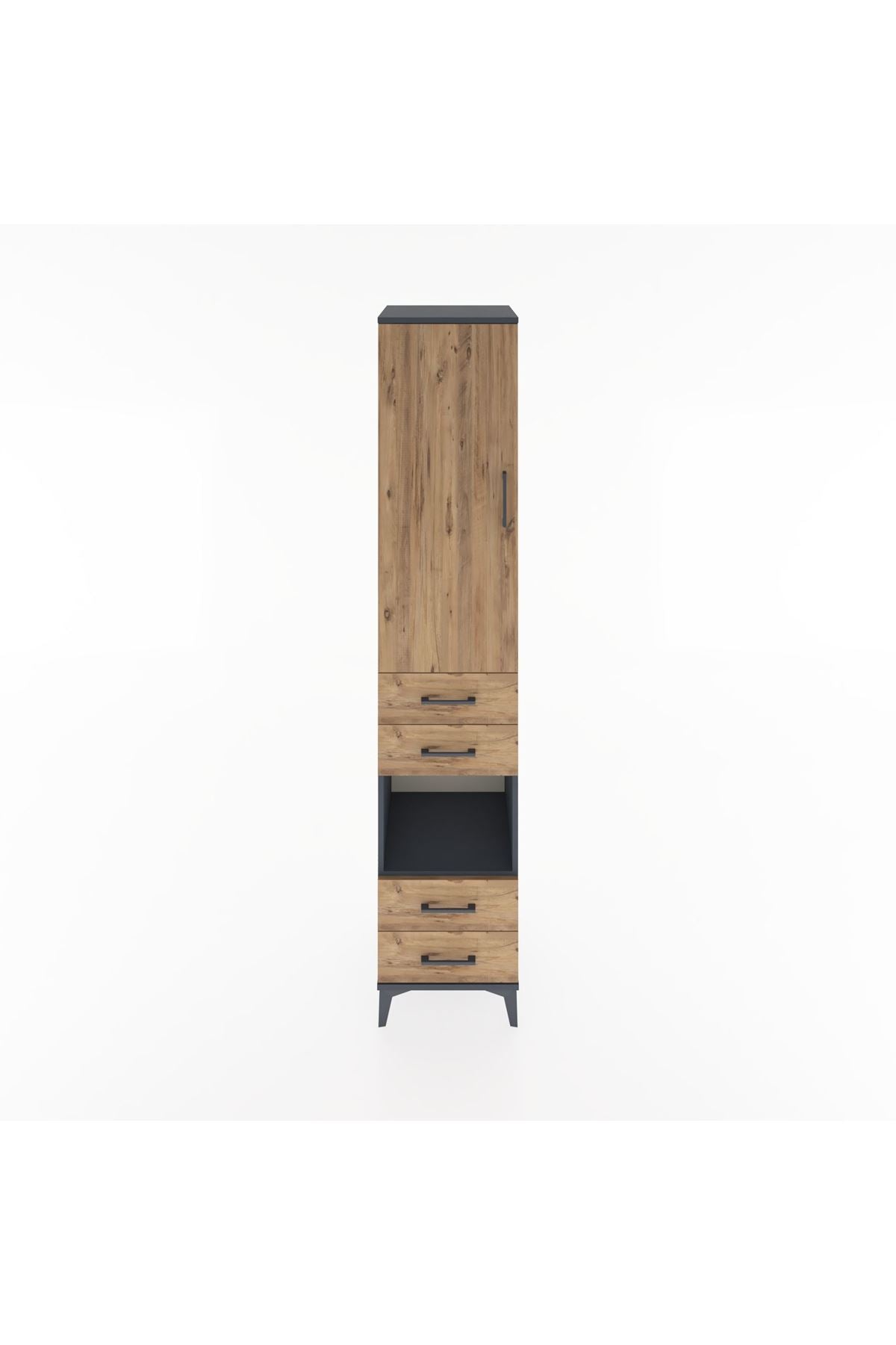 Hyperion Dolap 4 Raflı 4 Çekmeceli Tek Kapaklı 44x44x221 Antrasit-Çam