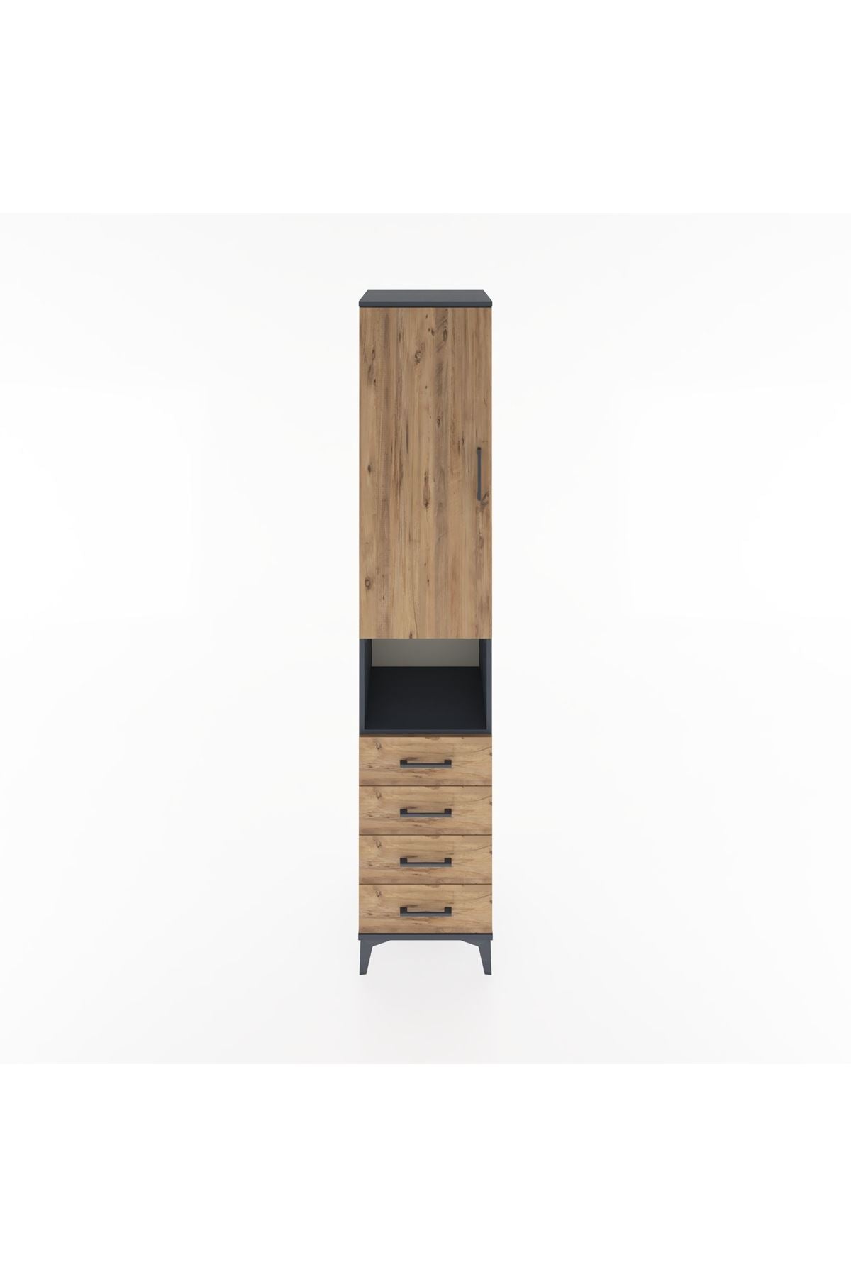 Hyperion Dolap 4 Raflı 4 Çekmeceli Tek Kapaklı 44x44x221 Antrasit-Çam