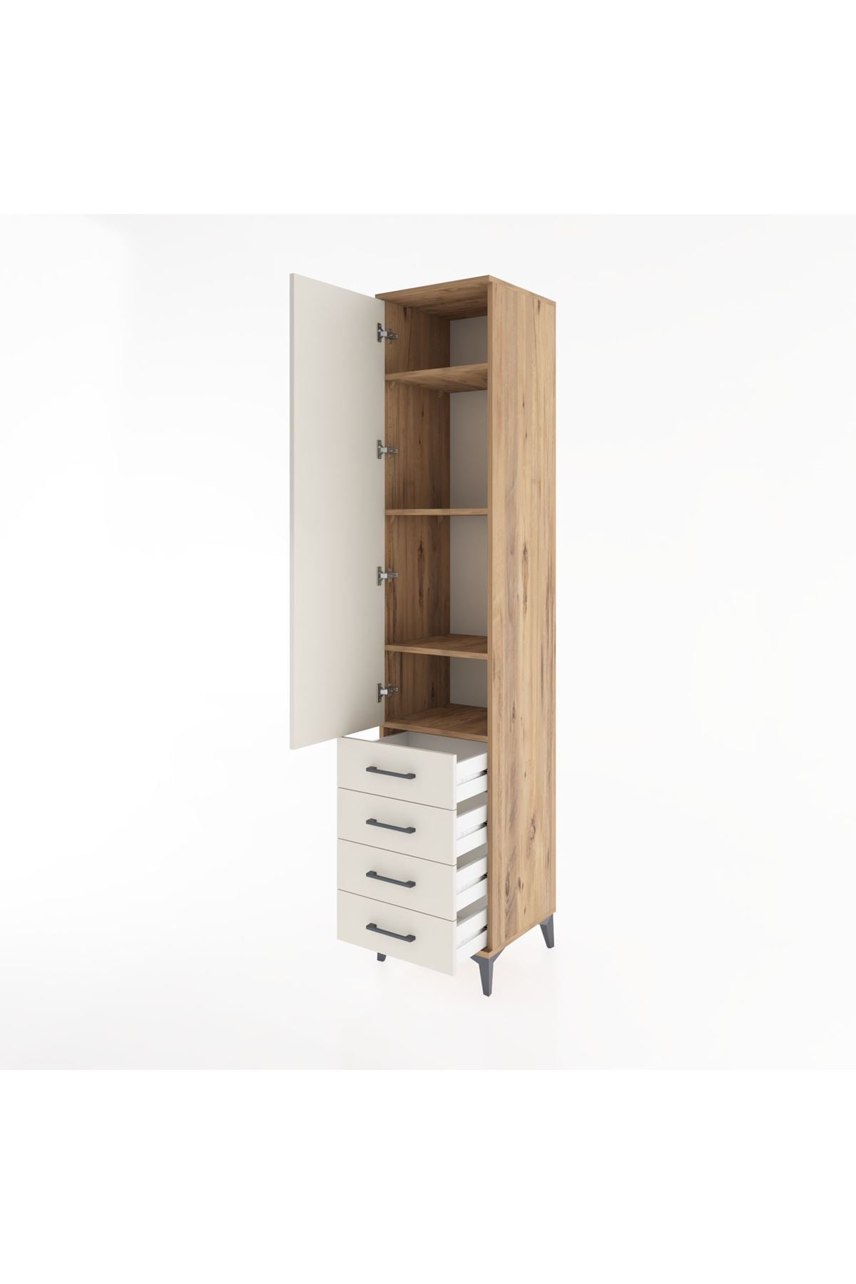 Hyperion Dolap 4 Raflı 4 Çekmeceli Tek Kapaklı 44x44x221 Çam-Aytaşı
