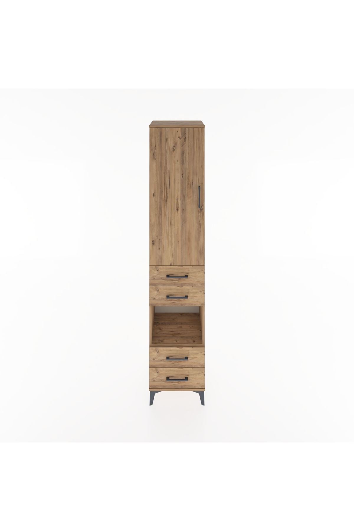 Hyperion Dolap 4 Raflı 4 Çekmeceli Tek Kapaklı 44x44x221 Çam-Çam