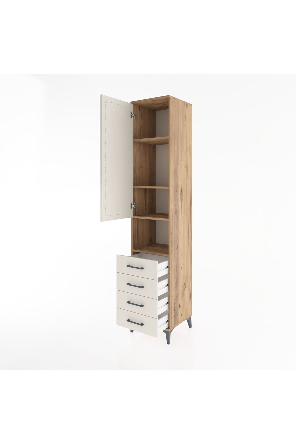 Hyperion Dolap 4 Raflı 4 Çekmeceli Tek Kapaklı 44x44x221 Çam-Aytaşı