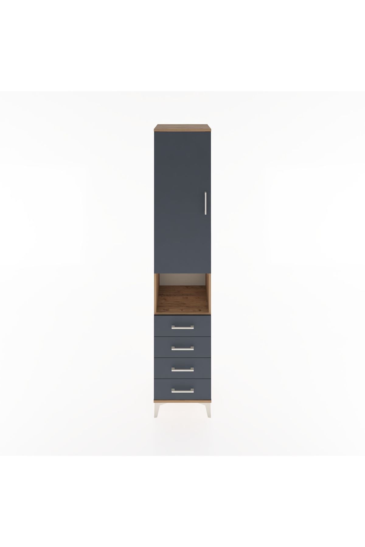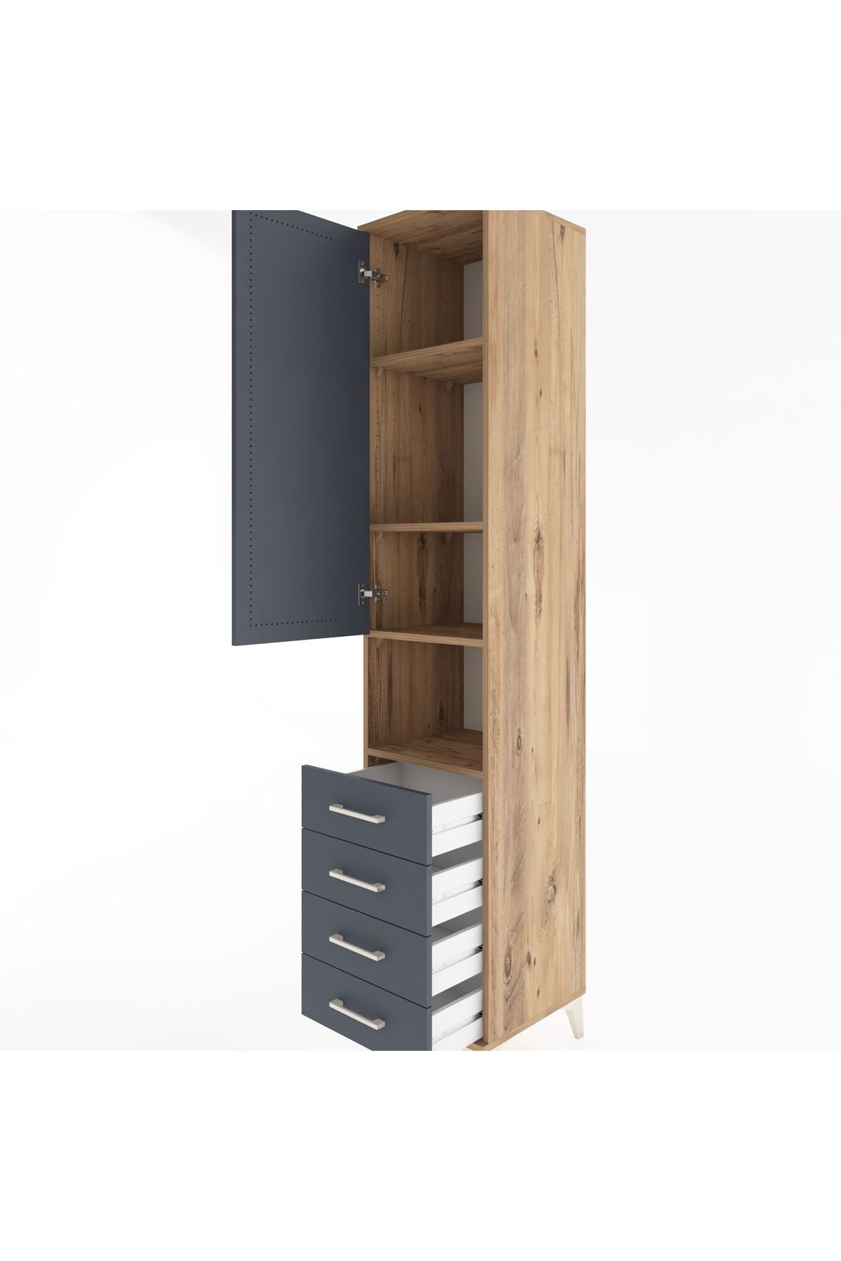 Hyperion Dolap 4 Raflı 4 Çekmeceli Tek Kapaklı 44x44x221 Çam-Antrasit