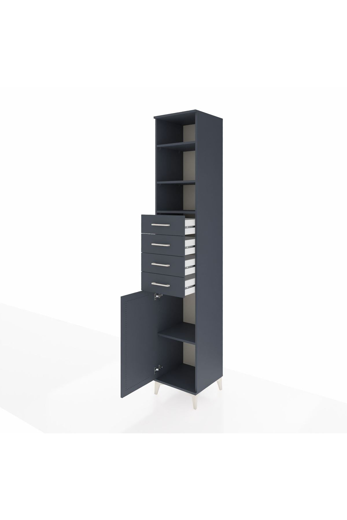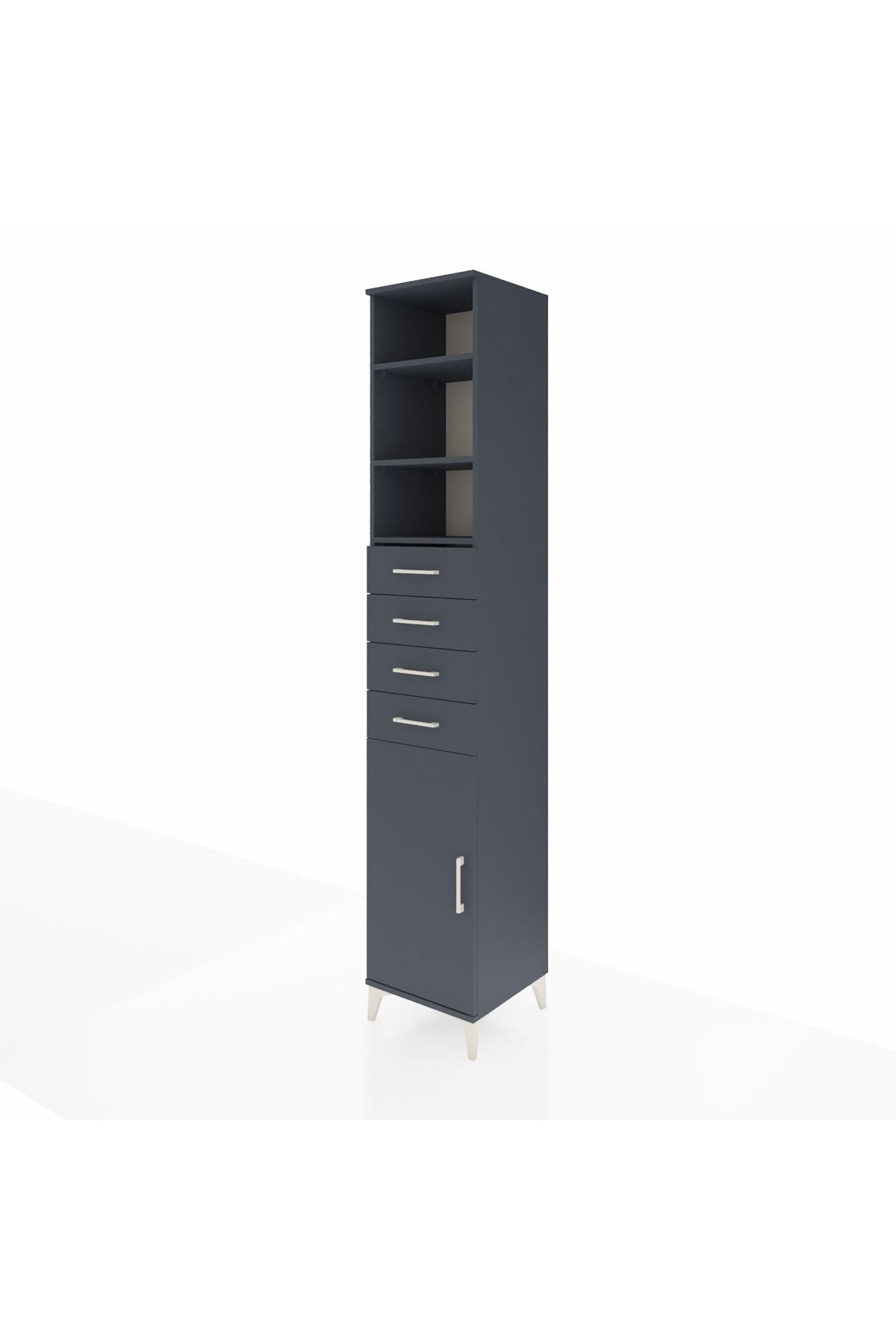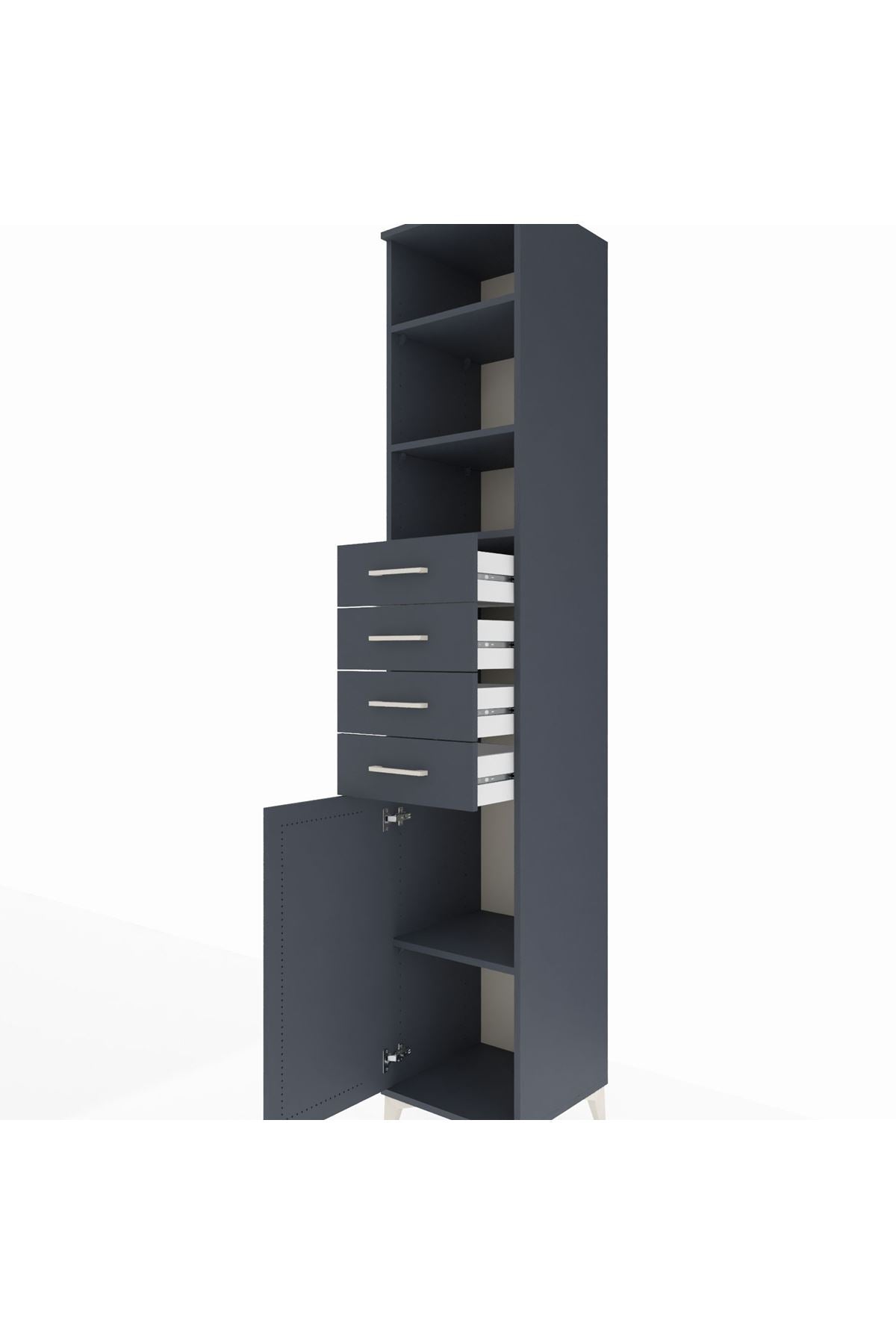 Hyperion Dolap 4 Raflı 4 Çekmeceli Tek Kapaklı 44x44x243 Antrasit-Antrasit