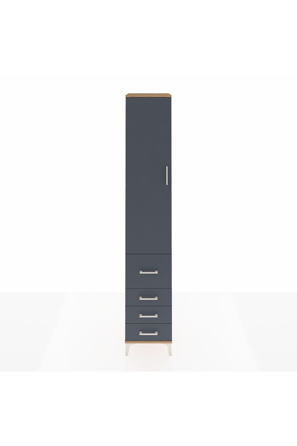 Hyperion Dolap 4 Raflı 4 Çekmeceli Tek Kapaklı 44x44x243 Çam-Antrasit