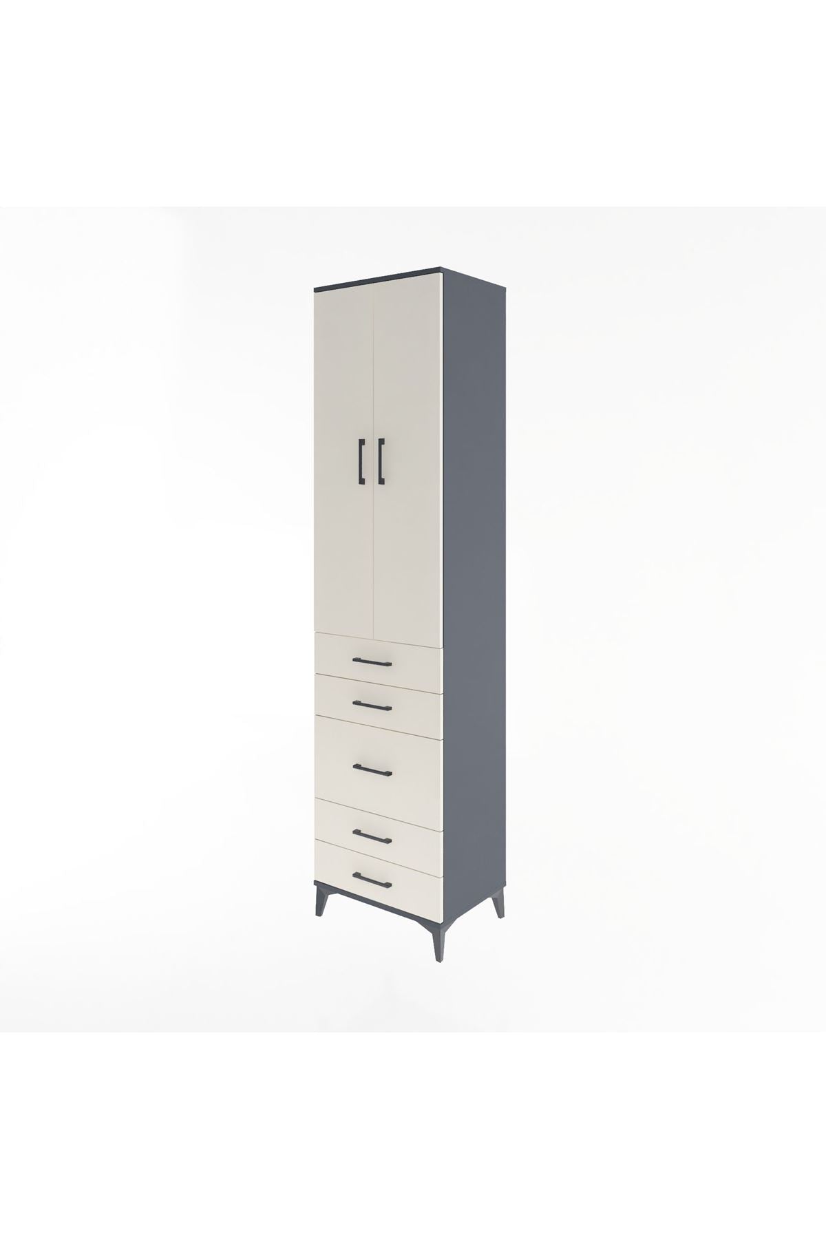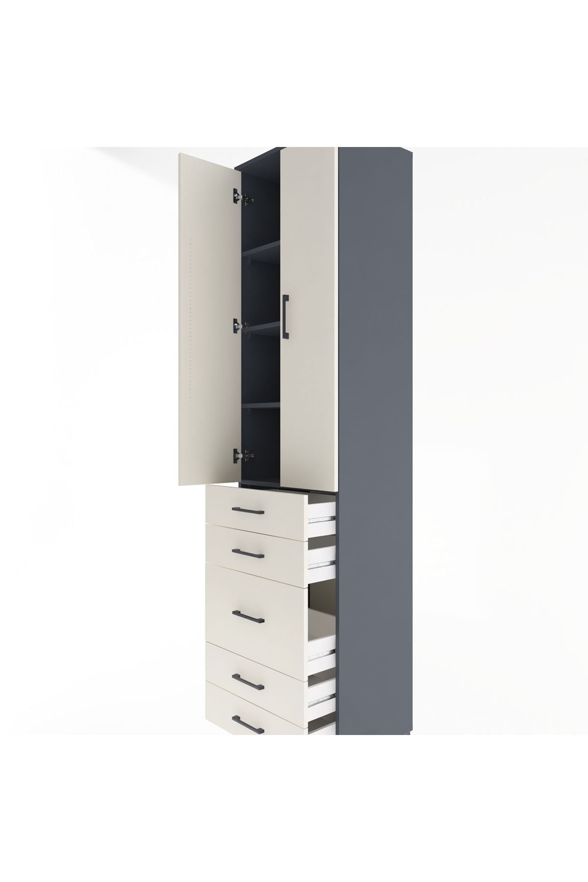 Hyperion Dolap 4 Raflı 5 Çekmeceli 2 Kapaklı 60x44x243 Antrasit-Aytaşı