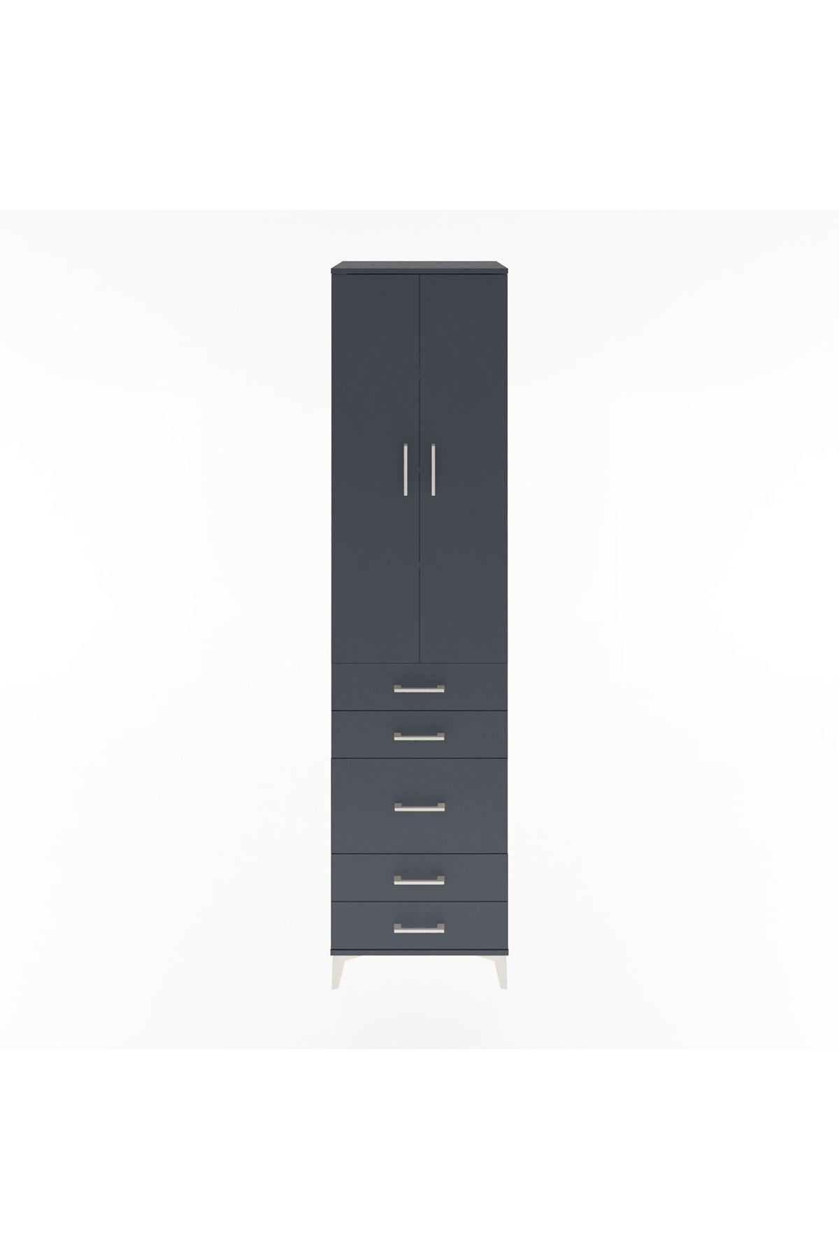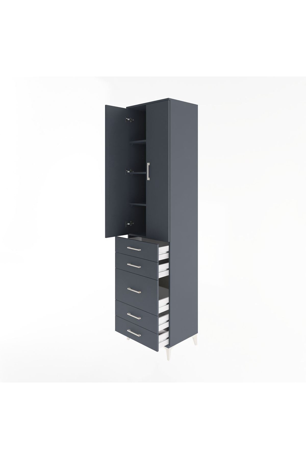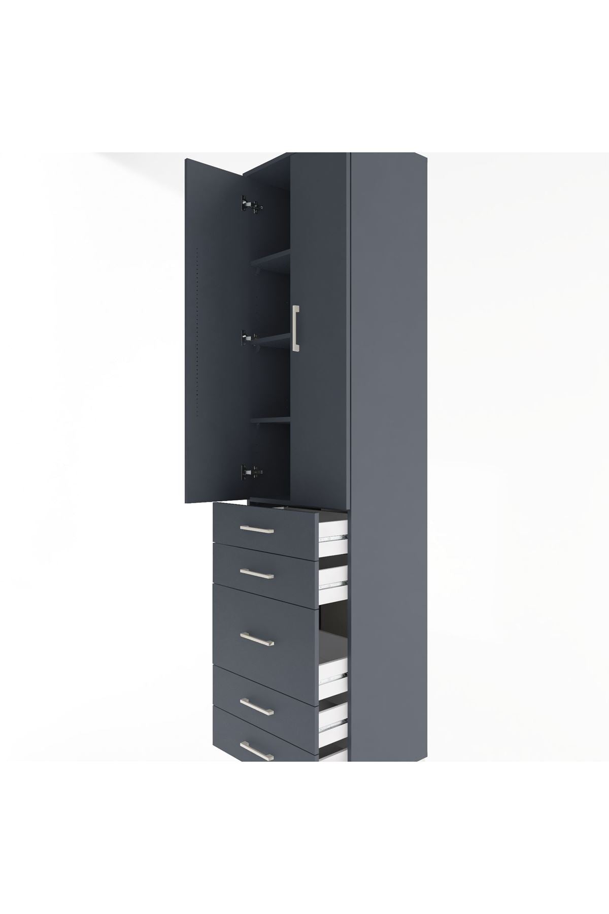 Hyperion Dolap 4 Raflı 5 Çekmeceli 2 Kapaklı 60x44x243 Antrasit-Antrasit