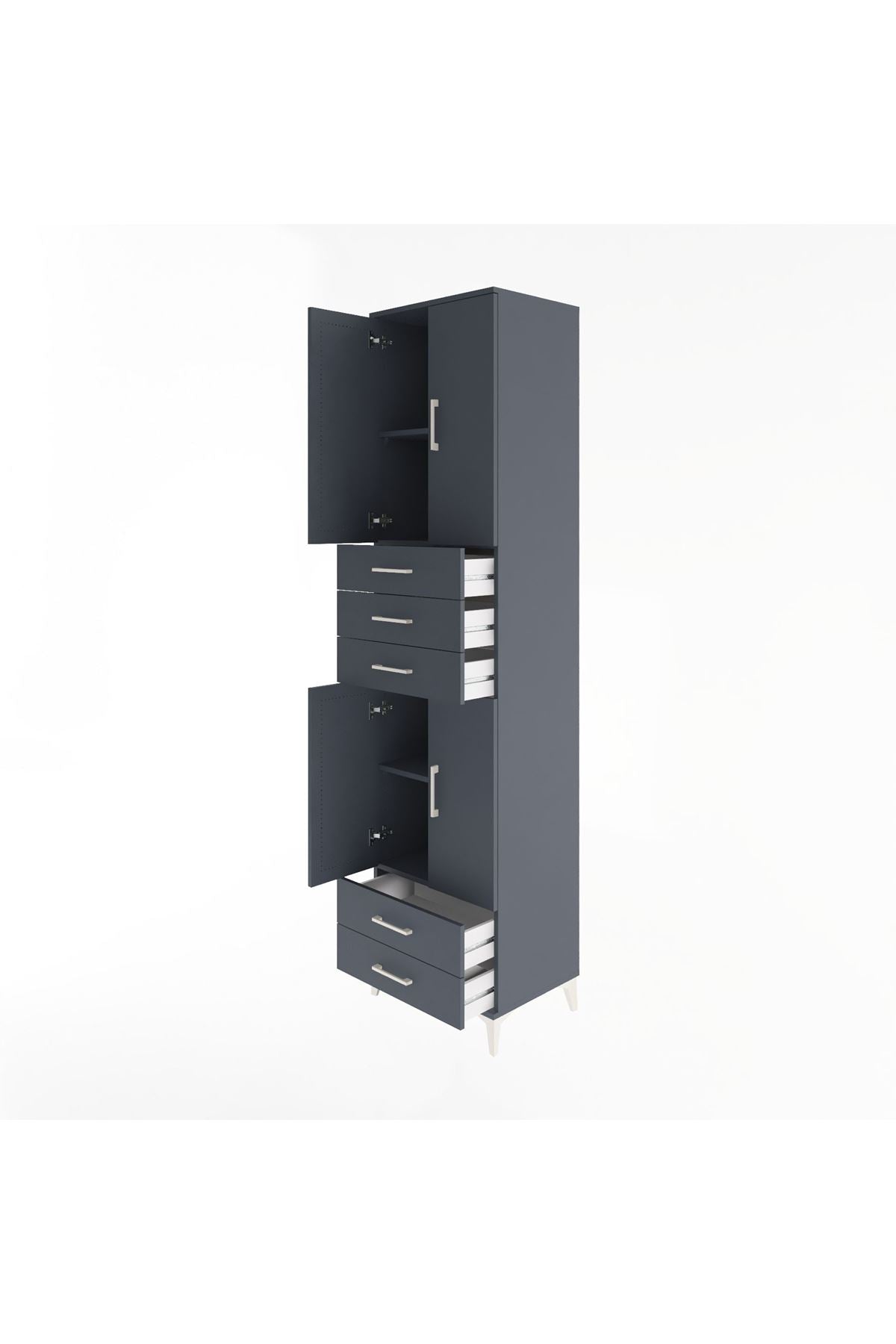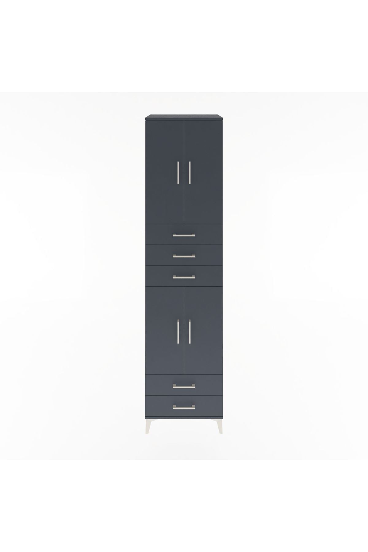 Hyperion Dolap 4 Raflı 5 Çekmeceli 4 Kapaklı 60x44x243 Antrasit-Antrasit