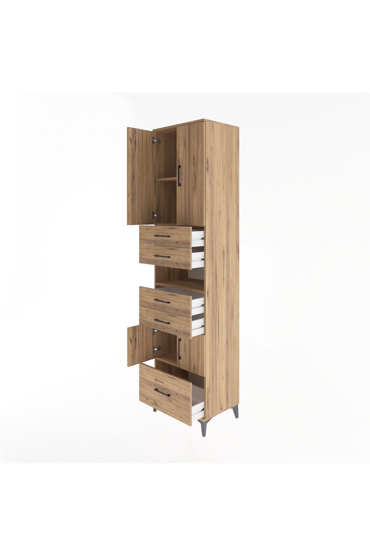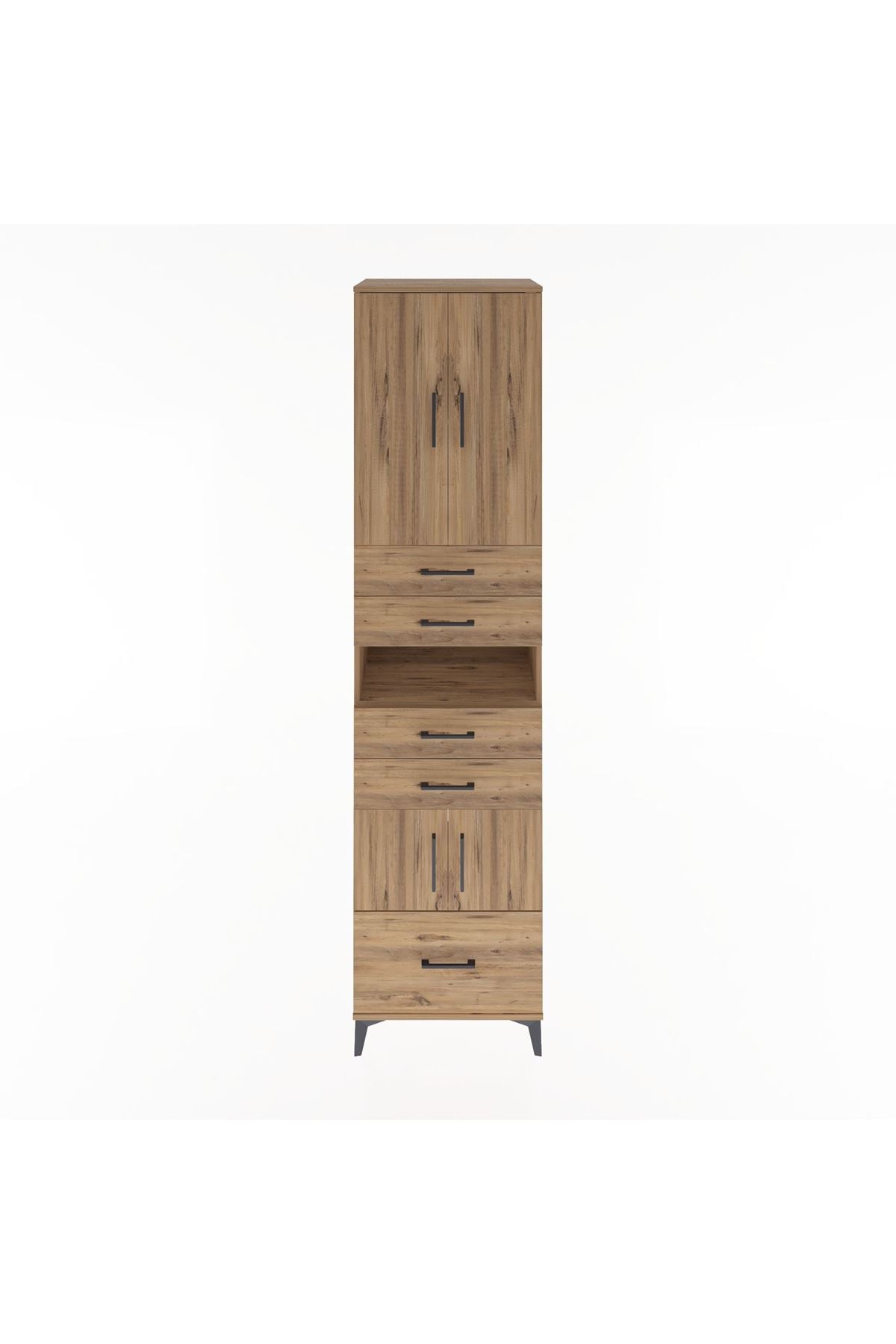 Hyperion Dolap 4 Raflı 5 Çekmeceli 4 Kapaklı 60x44x243 Çam-Çam