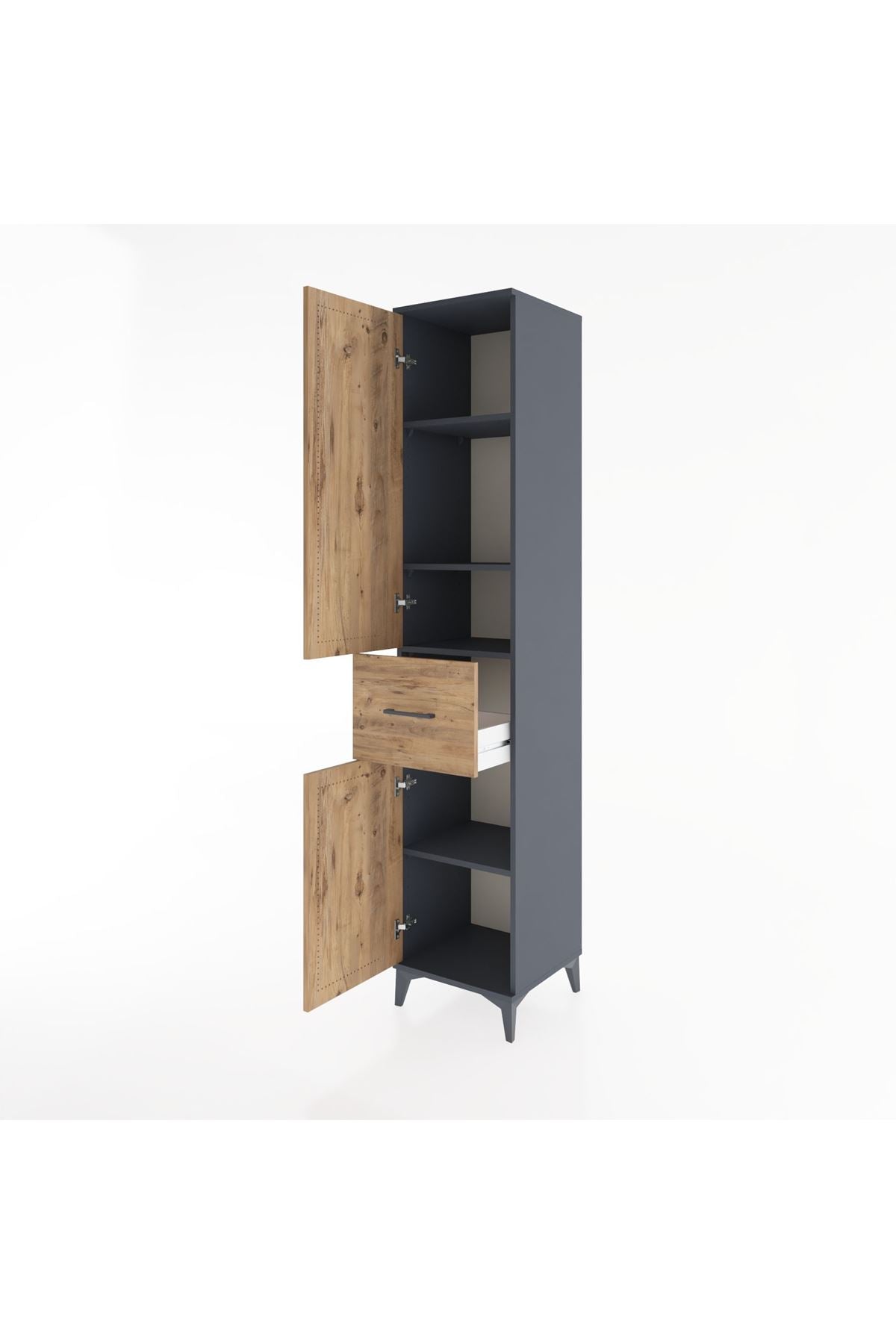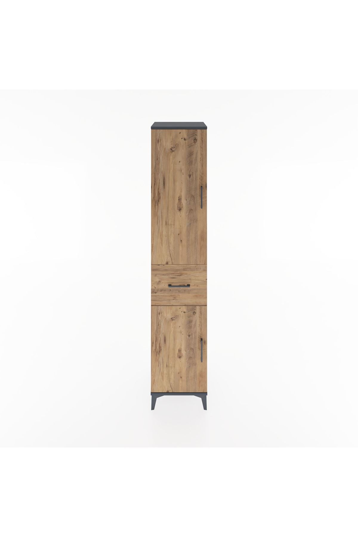 Hyperion Dolap 4 Raflı Tek Çekmeceli 2 Kapaklı 44x44x221 Antrasit-Çam