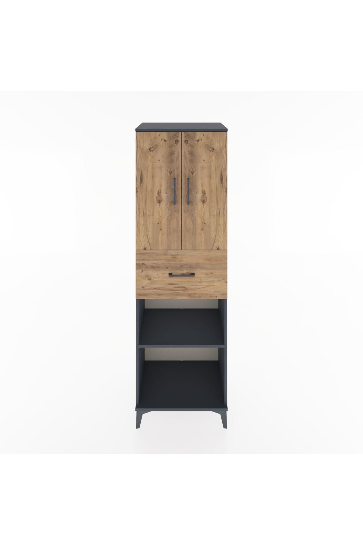 Hyperion Dolap 4 Raflı Tek Çekmeceli 2 Kapaklı 60x44x195 Antrasit-Çam