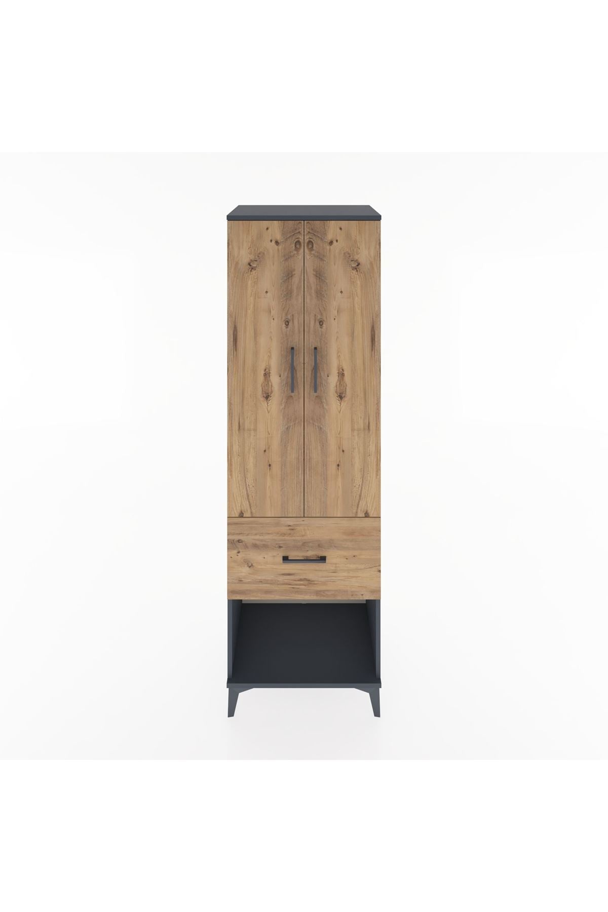 Hyperion Dolap 4 Raflı Tek Çekmeceli 2 Kapaklı 60x44x195 Antrasit-Çam