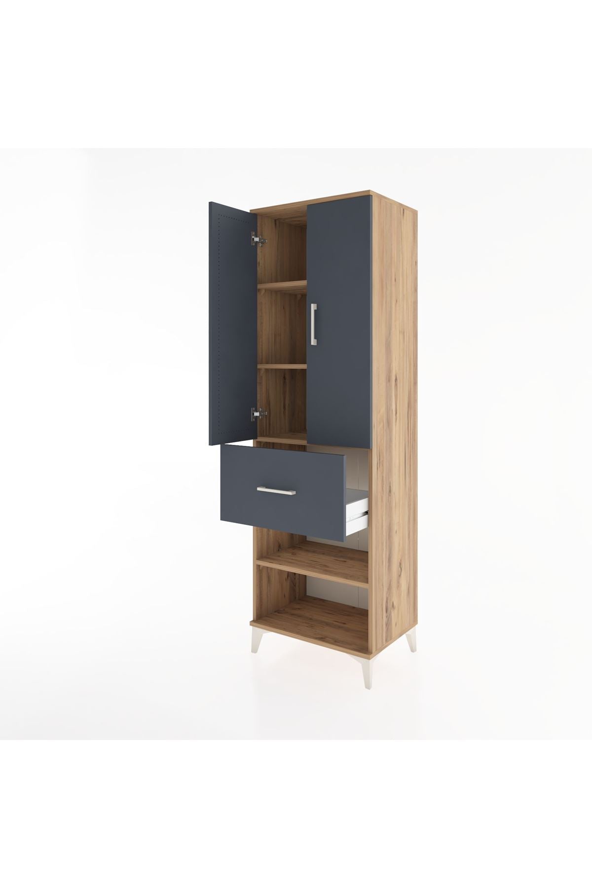 Hyperion Dolap 4 Raflı Tek Çekmeceli 2 Kapaklı 60x44x195 Çam-Antrasit
